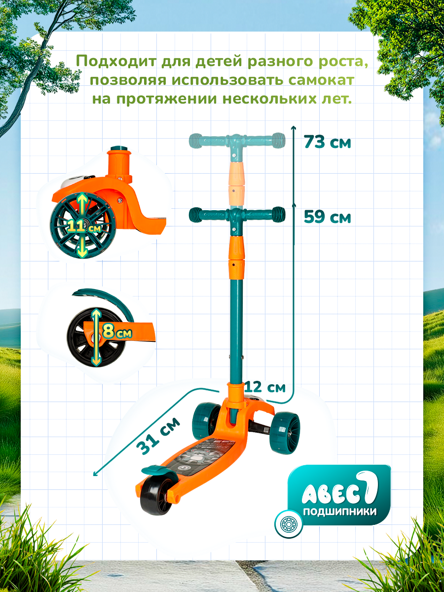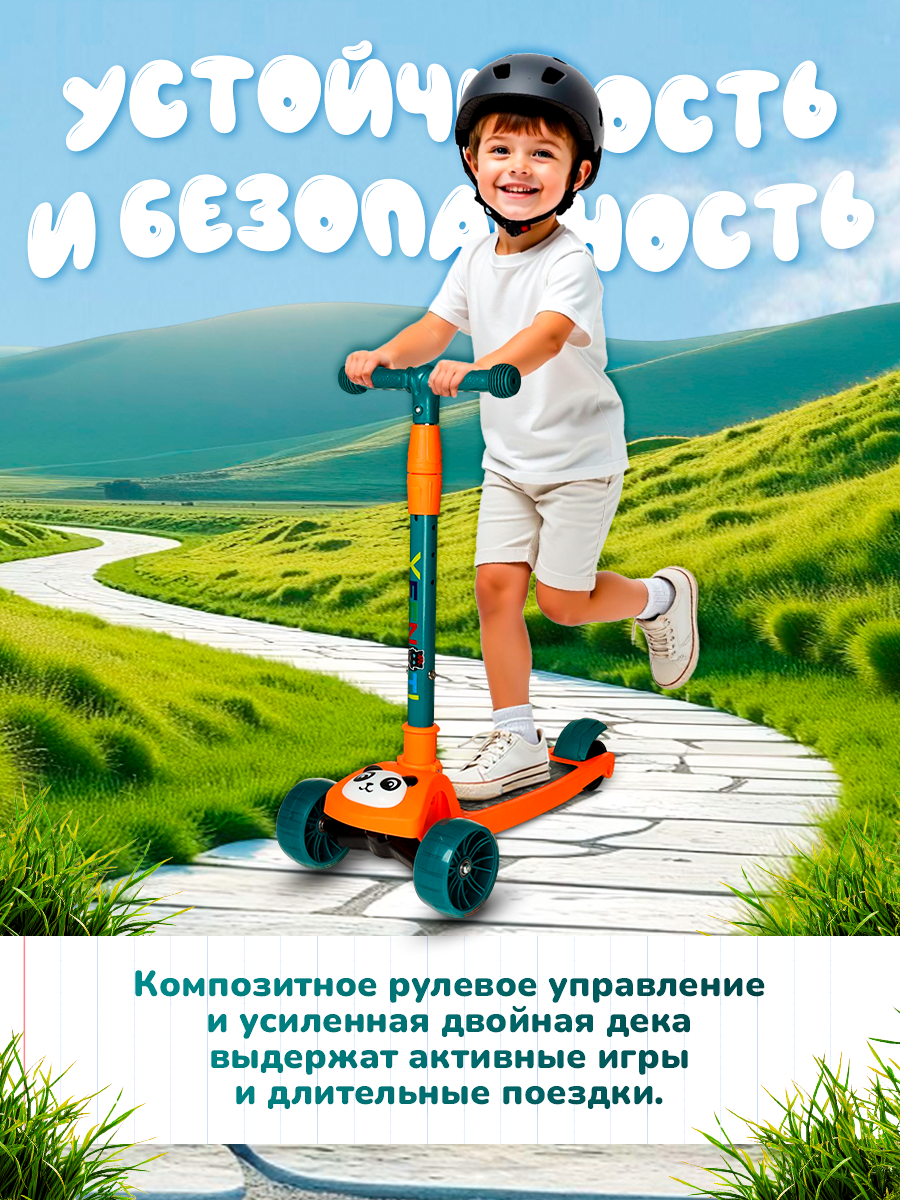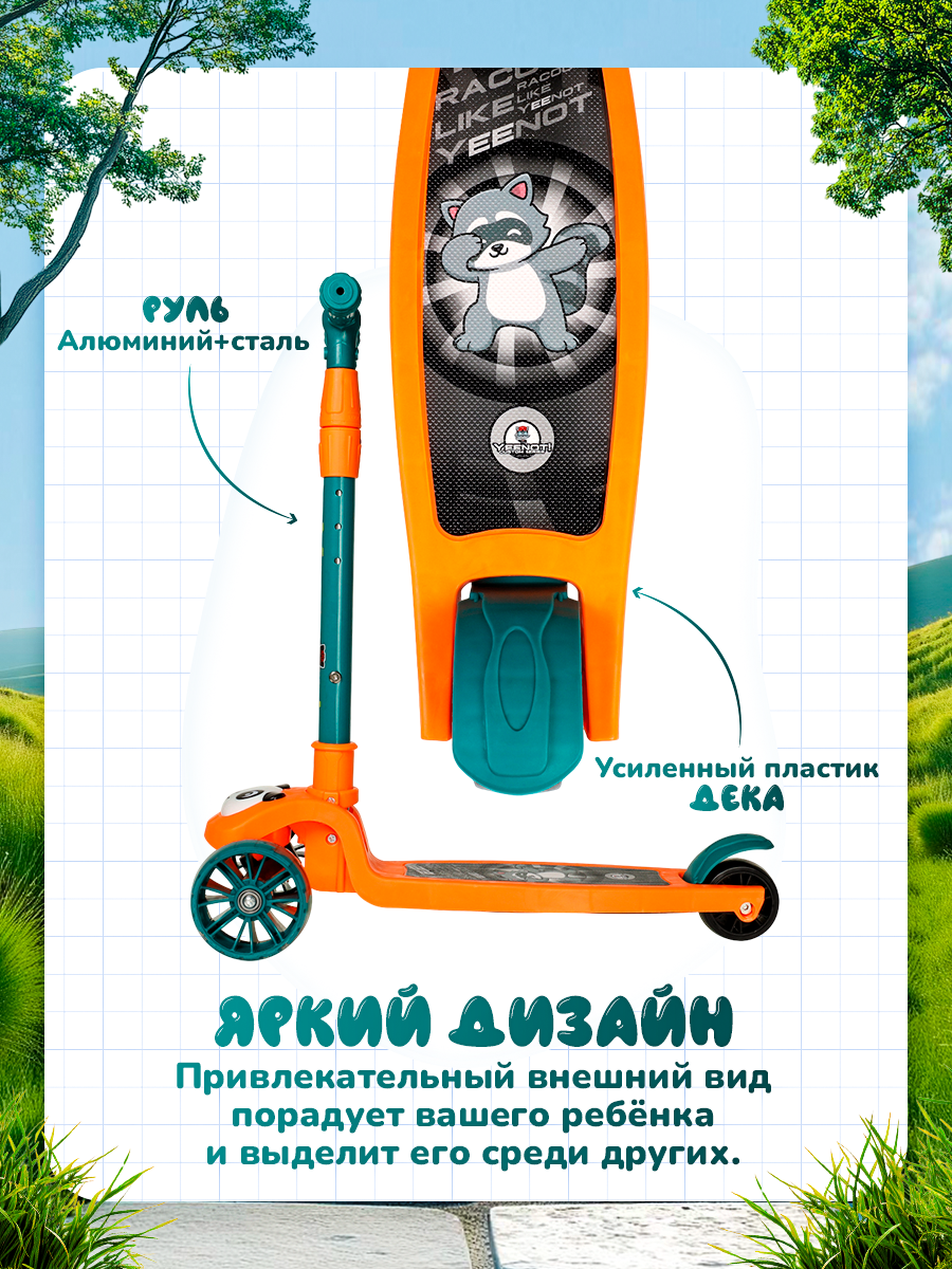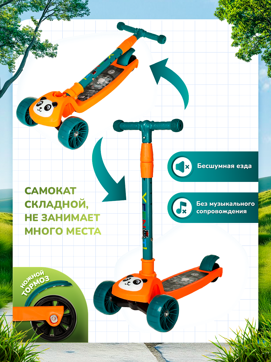Самокат 3-х колесный для детей 27 лет COMIRON Yeenot Панда, складной, светящиеся колеса интересное: