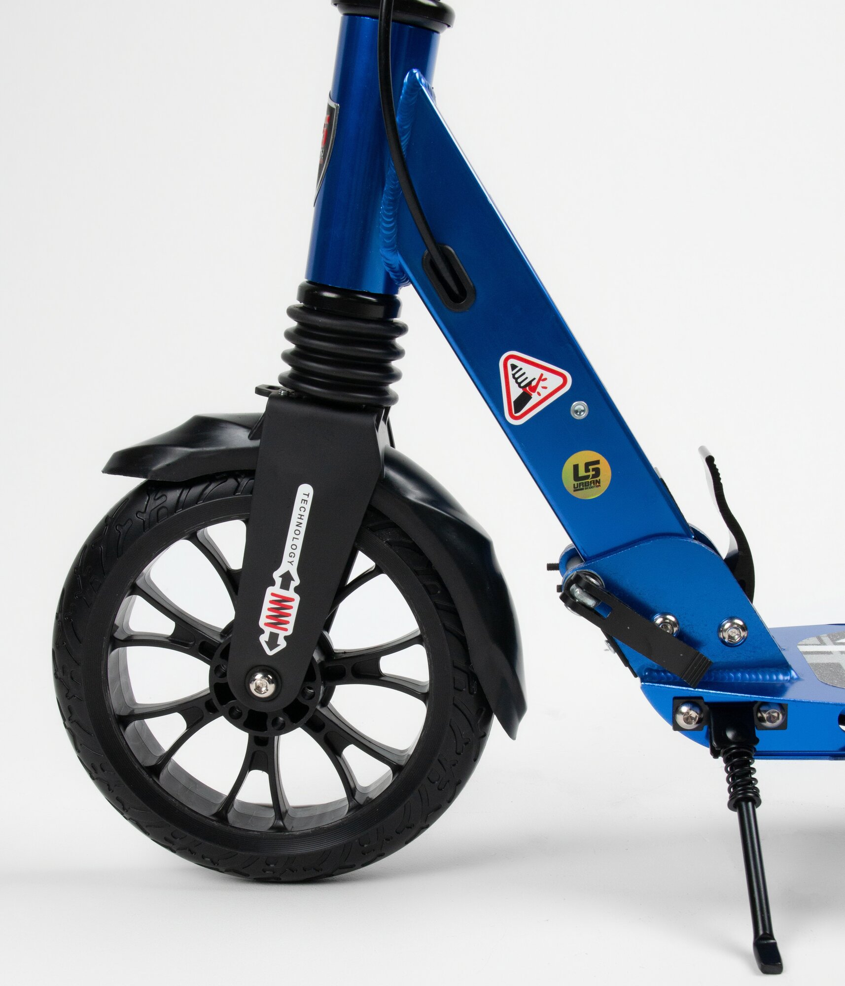 Купить Двухколёсный самокат Urban складной с амортизаторами и дисковым тормозом US Scooter Disk Brake 2025 Синий с бутылкой