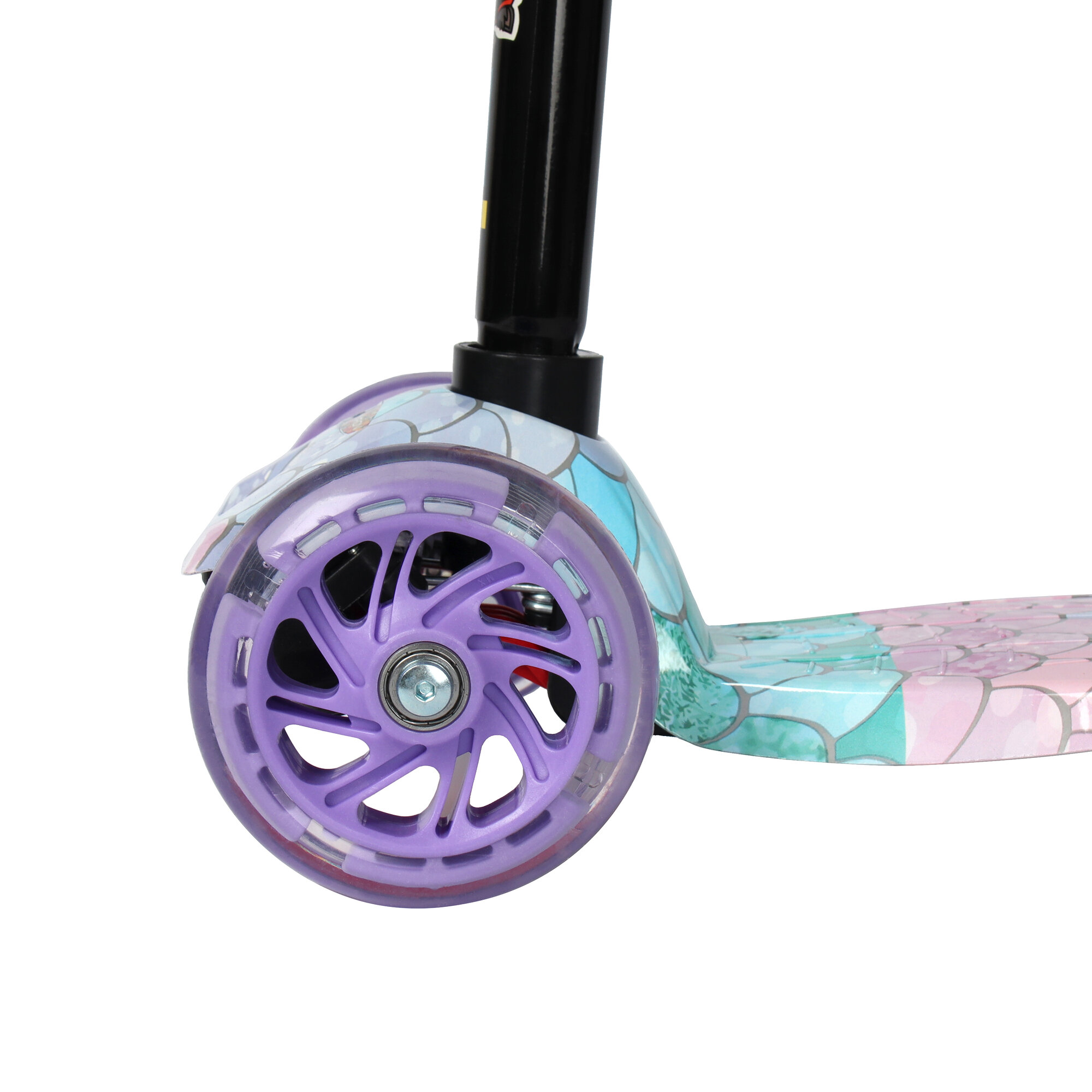 Купить Самокат трехколесный детский до 50 кг с рисунком и со светящимися колесами, цвет бирюзовый Русалка