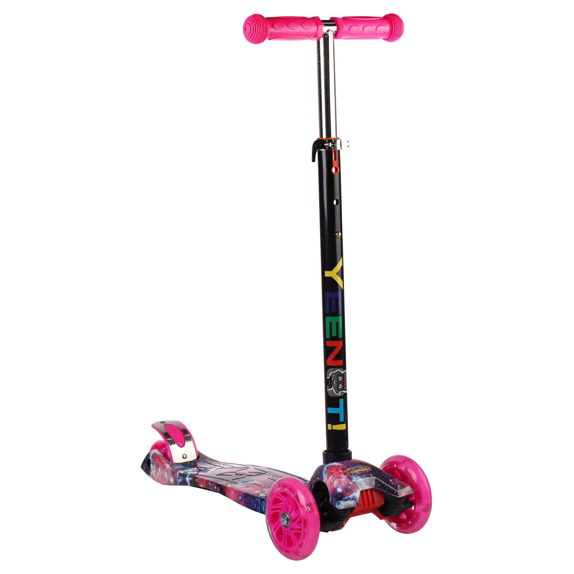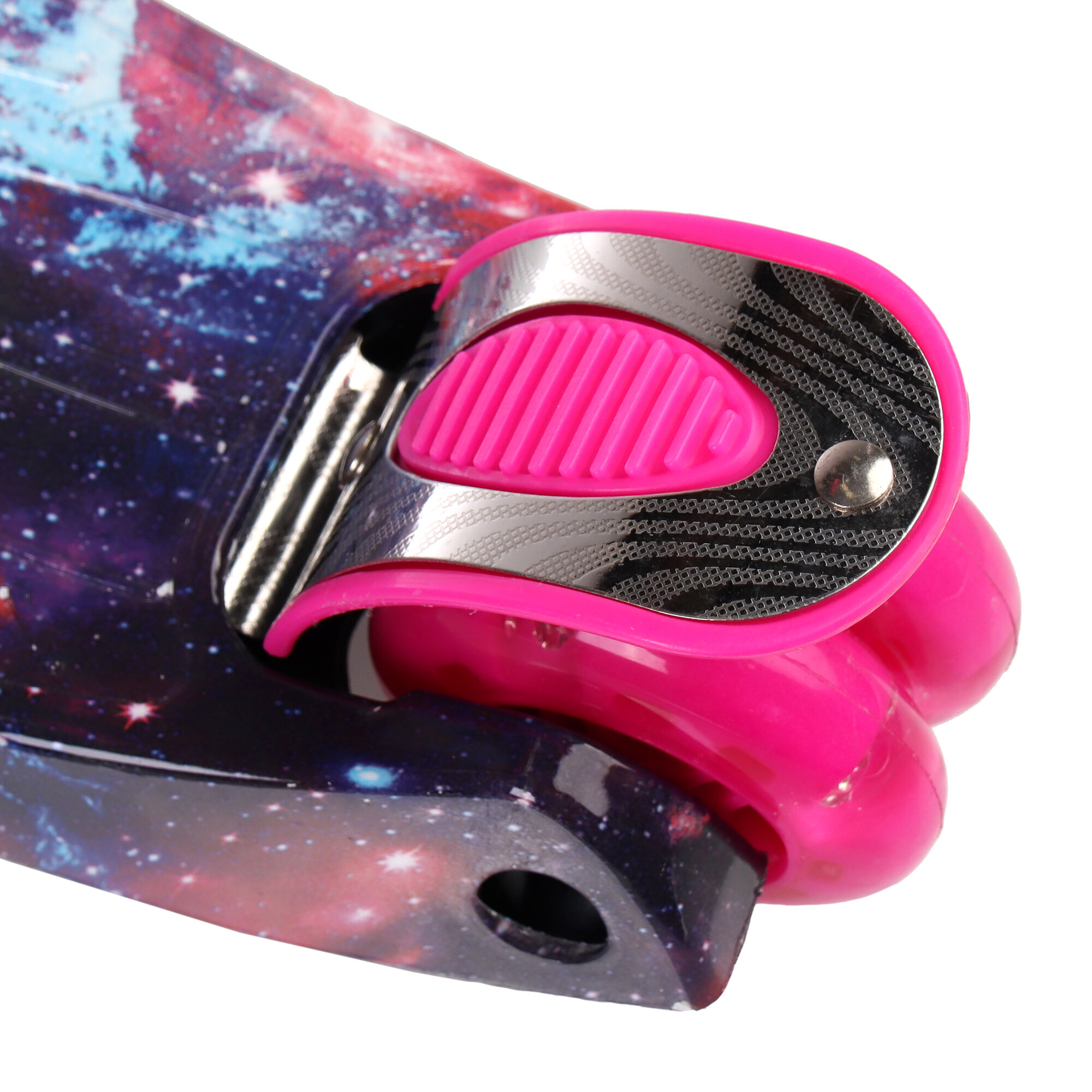 Купить Самокат детский трехколесный COMIRON Yeenot 2х2 "Вселенная", регулируемая ручка, усиленное двойное заднее колесо, светящиеся колеса 115 и 75 мм, нагрузка до 50 кг, ABEC 7, разноцветный / 1 шт.
