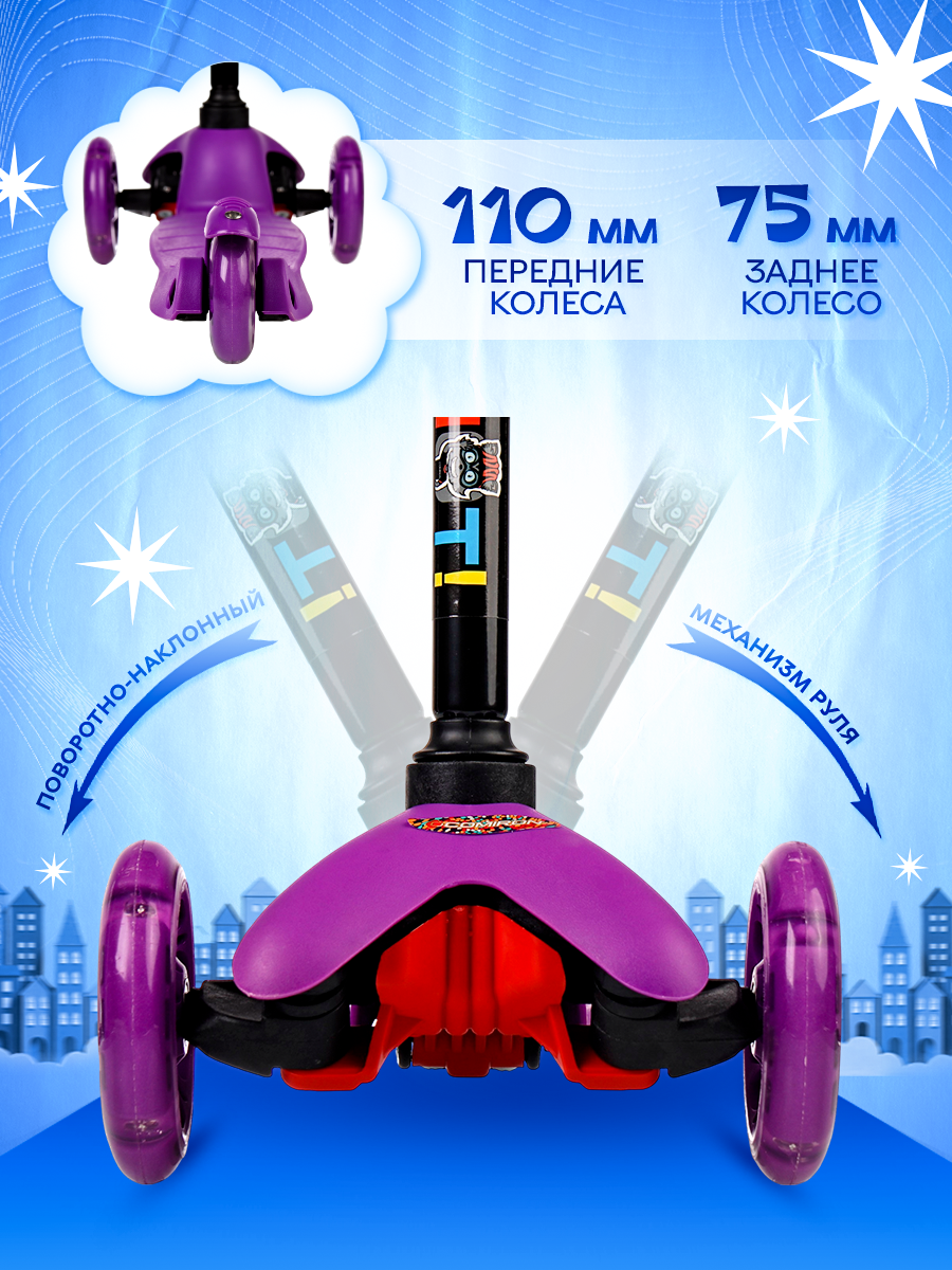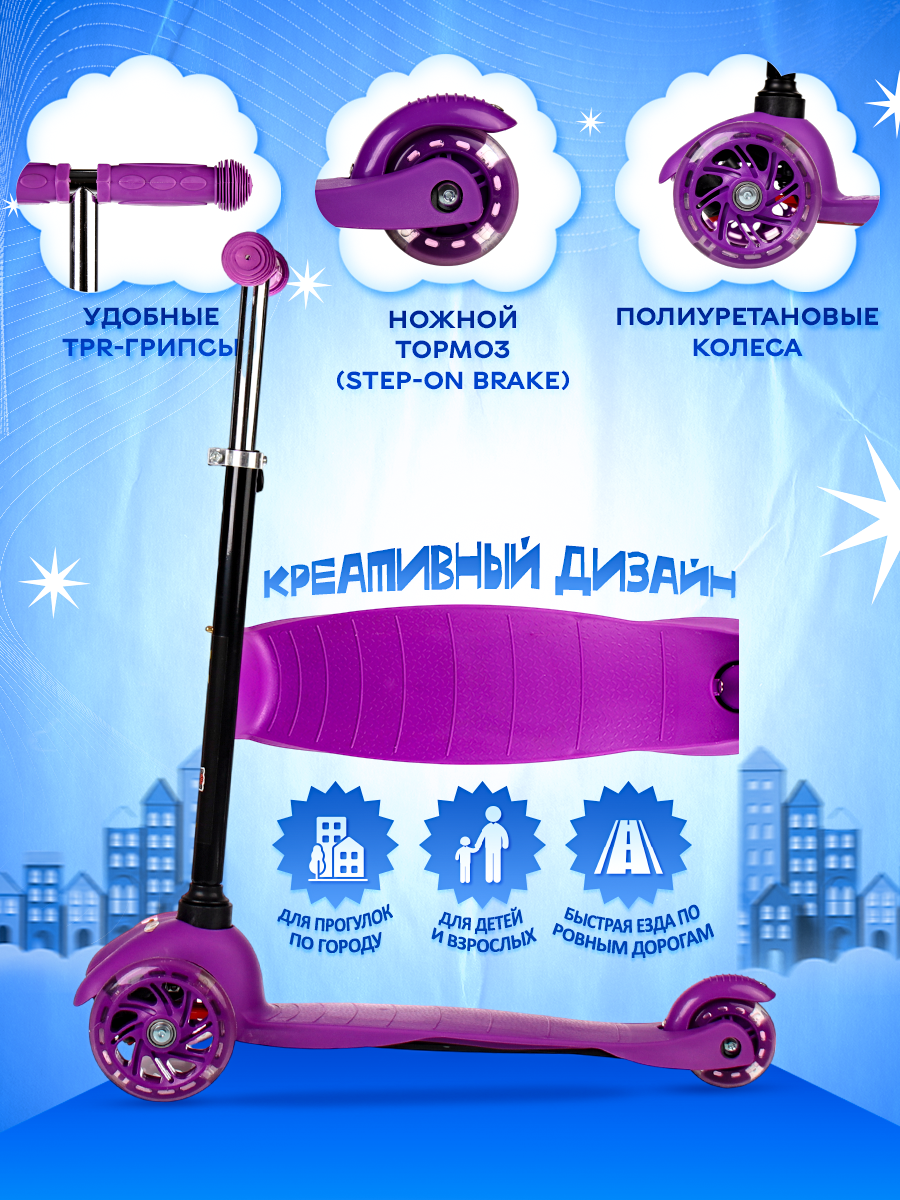 СохранитьСамокат детский трехколесный COMIRON Yeenot Kids, регулируемая ручка, светящиеся колеса 110 и 75 мм, нагрузка до 30 кг, ABEC 7, фиолетовый / 1 шт. интересное: