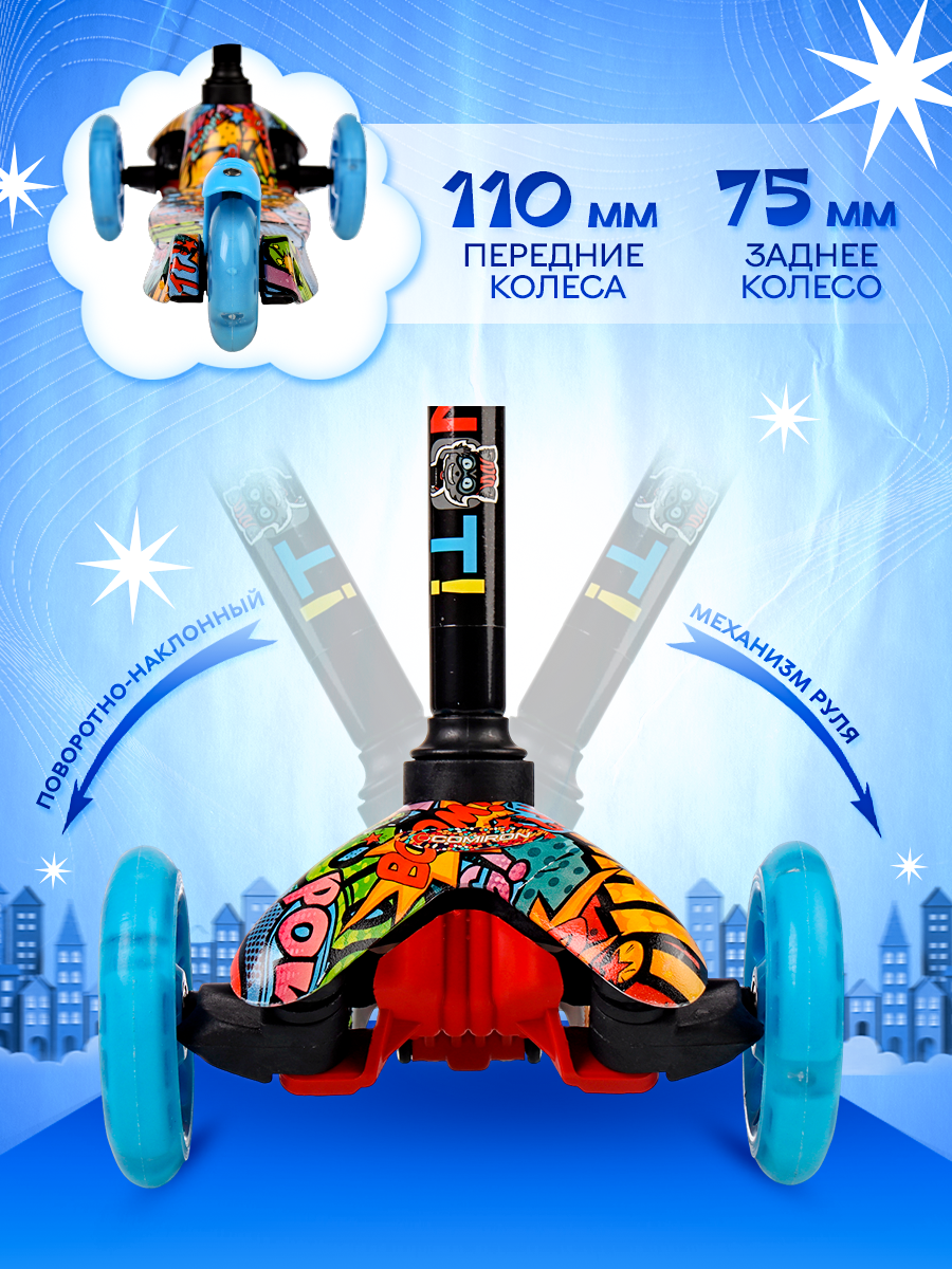 Купить Самокат детский трехколесный COMIRON Yeenot Kids "Граффити-2", регулируемая ручка, светящиеся колеса 110 и 75 мм, нагрузка до 30 кг, ABEC 7, разноцветный / 1 шт.