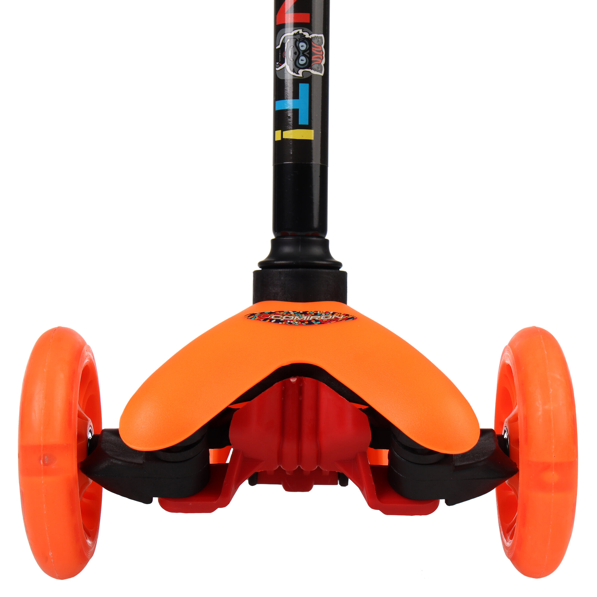 Самокат детский трехколесный COMIRON Mini, регулируемая ручка, светящиеся колеса 110 и 75 мм, нагрузка до 30 кг, ABEC 7, черный / 1 шт.