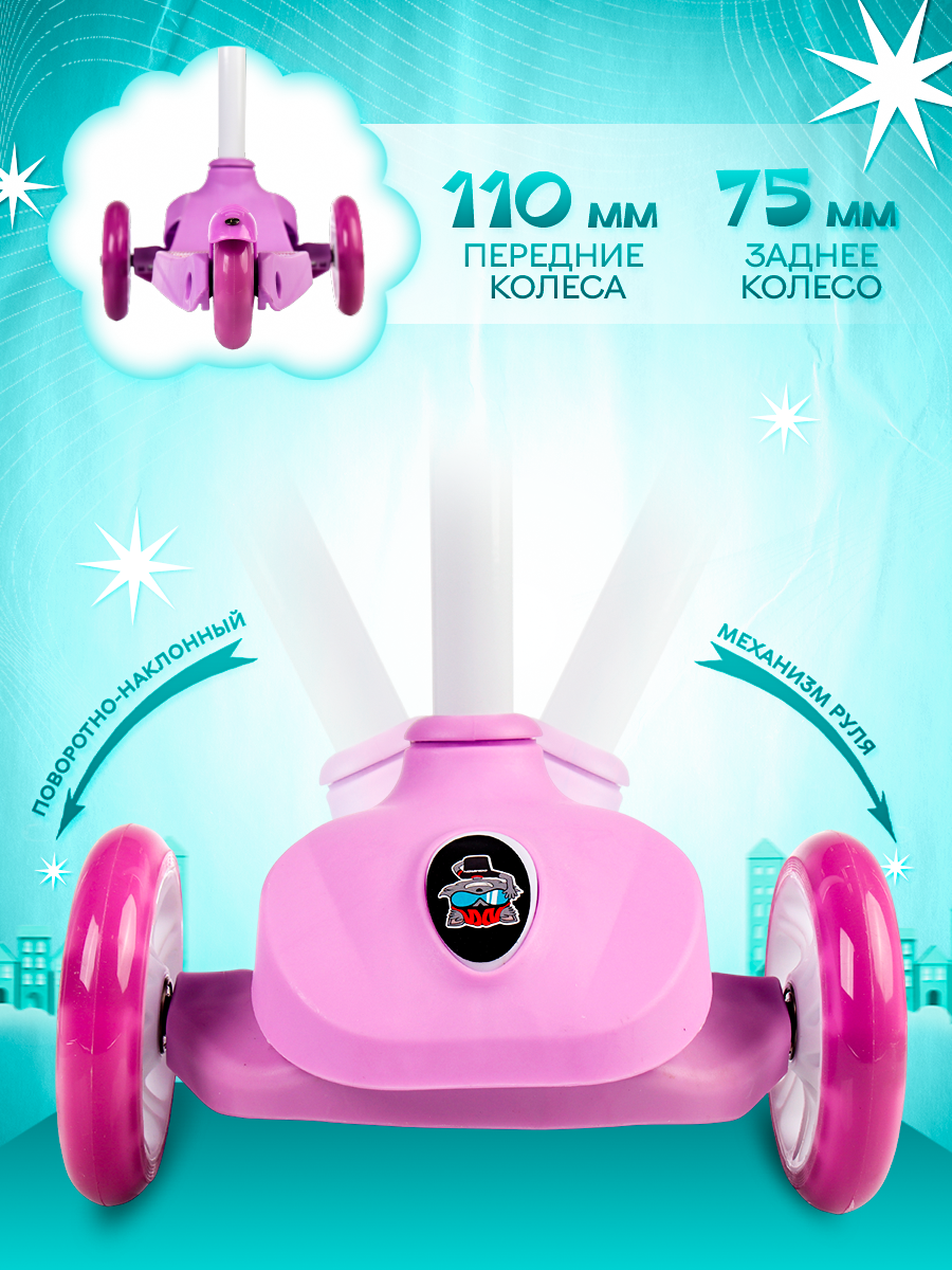 Самокат детский трехколесный COMIRON Yeenot "Зверята", регулируемая складная ручка, светящиеся колеса 110 и 75 мм, нагрузка до 40 кг, розовый / 1 шт.