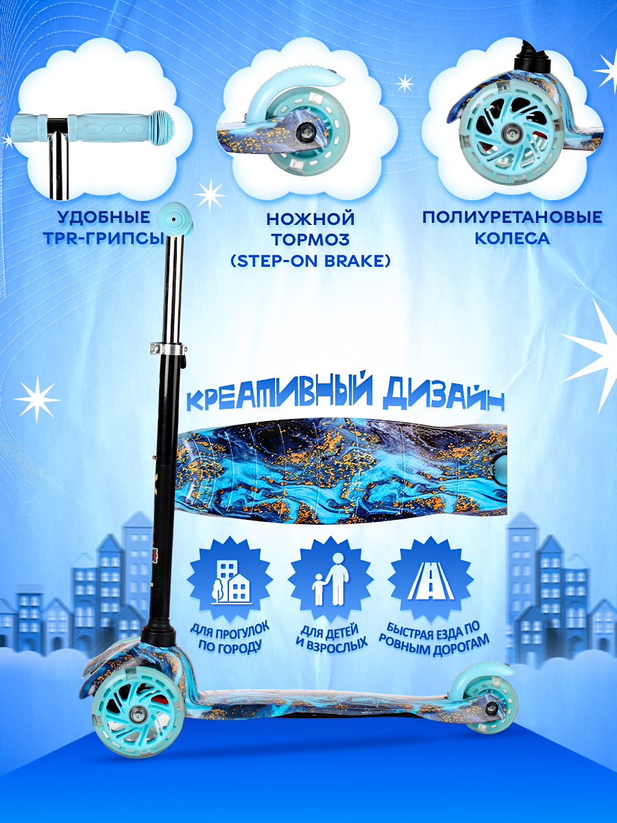 СохранитьСамокат детский трехколесный COMIRON Yeenot Kids "Подводный мир", регулируемая ручка, светящиеся колеса 110 и 75 мм, нагрузка до 30 кг, ABEC 7, разноцветный / 1 шт. интересное: