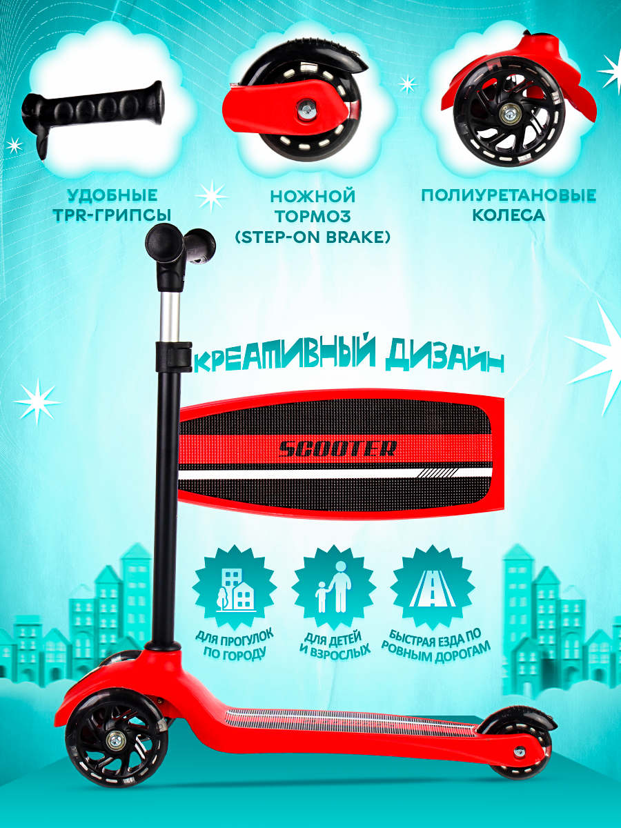 СохранитьСамокат детский трехколесный COMIRON Mini, регулируемая ручка, светящиеся колеса 110 и 75 мм, нагрузка до 30 кг, ABEC 7, красный / 1 шт. интересное: