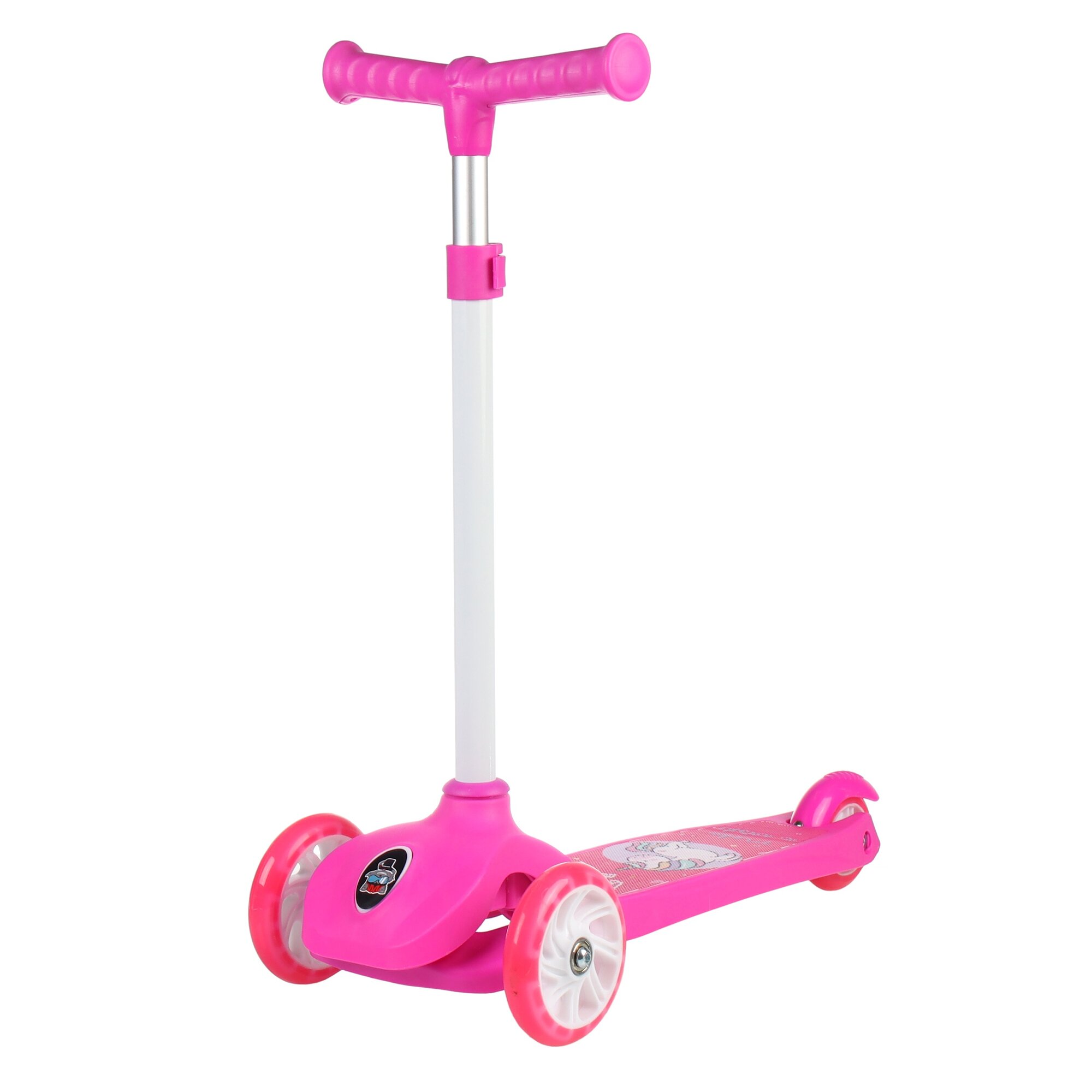 Самокат детский трехколесный COMIRON Yeenot "Зверята", регулируемая складная ручка, светящиеся колеса 110 и 75 мм, нагрузка до 40 кг, розовый / 1 шт.