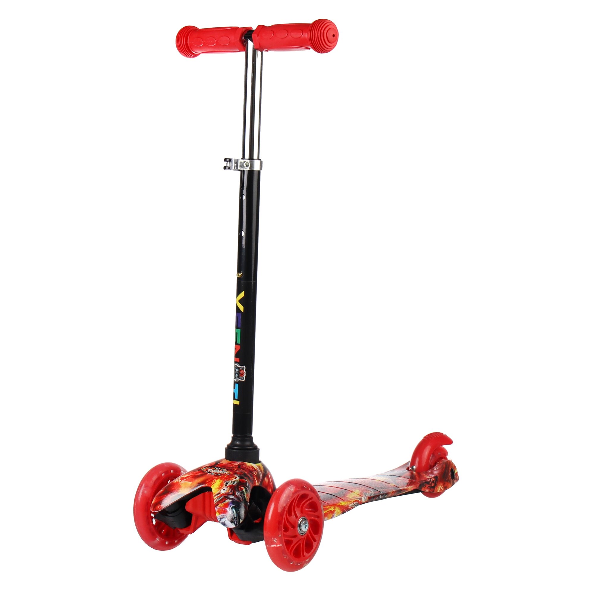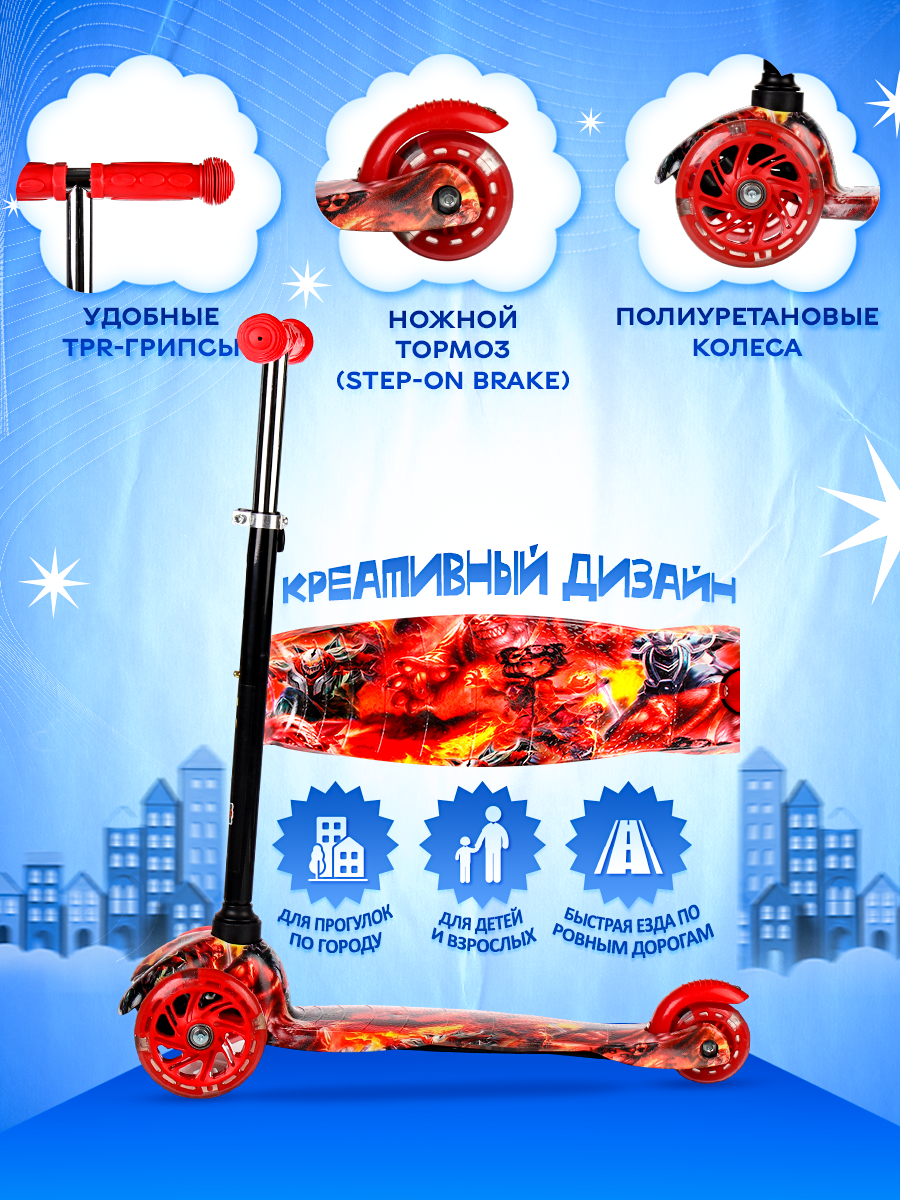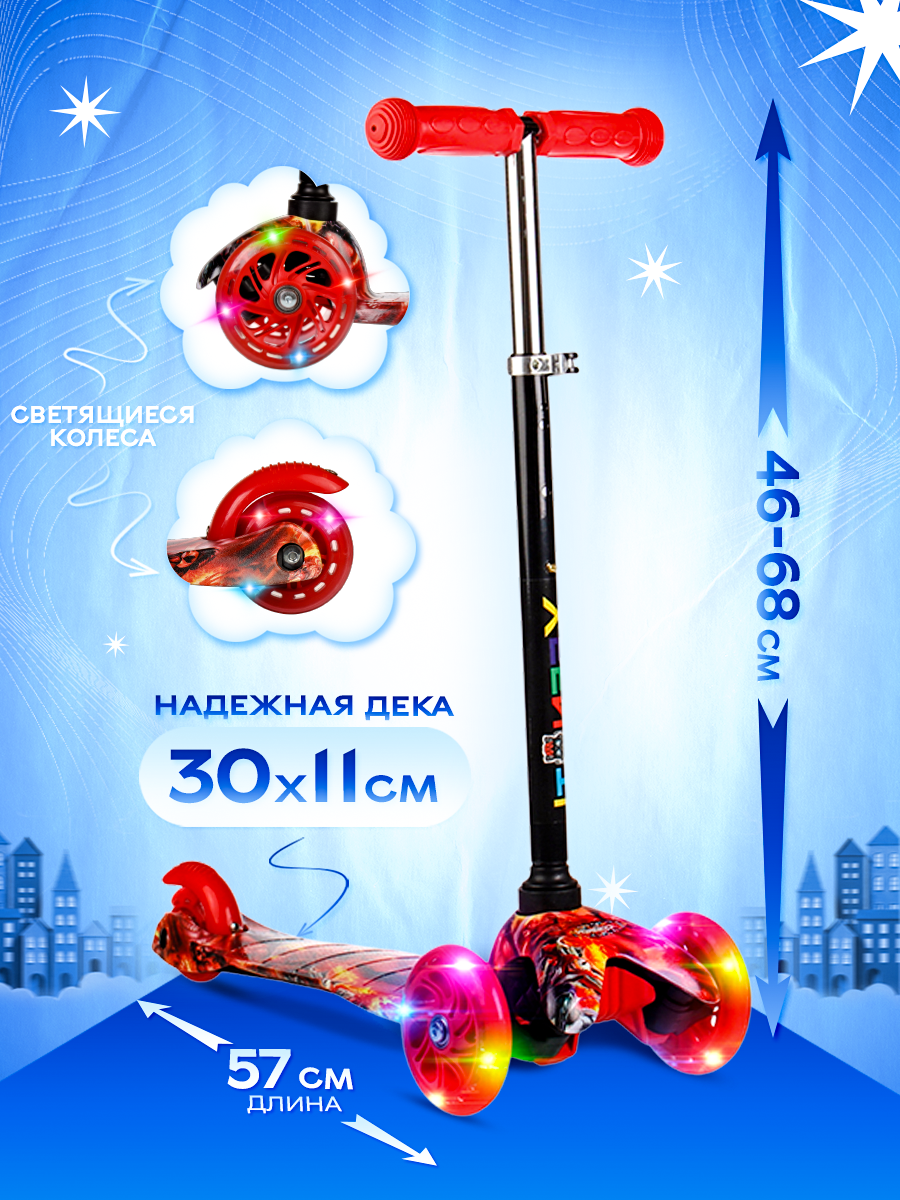 Купить Самокат детский трехколесный COMIRON Yeenot Kids "Огонь", регулируемая ручка, светящиеся колеса 110 и 75 мм, нагрузка до 30 кг, ABEC 7, разноцветный / 1 шт.