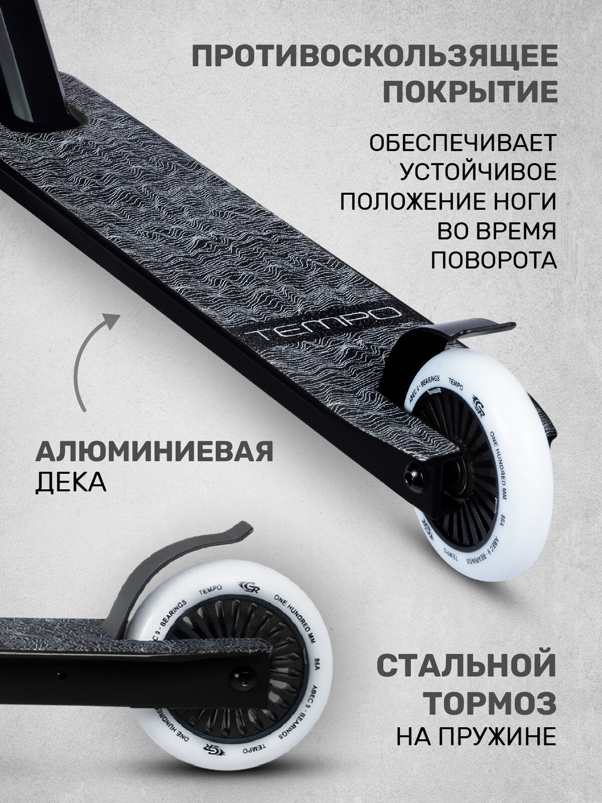 Купить Самокат трюковый CITYRIDE TEMPO, PU 100/86 А, алюминиевая дека 33/10, стальной тормоз на пружине, CR-SS-04TEB