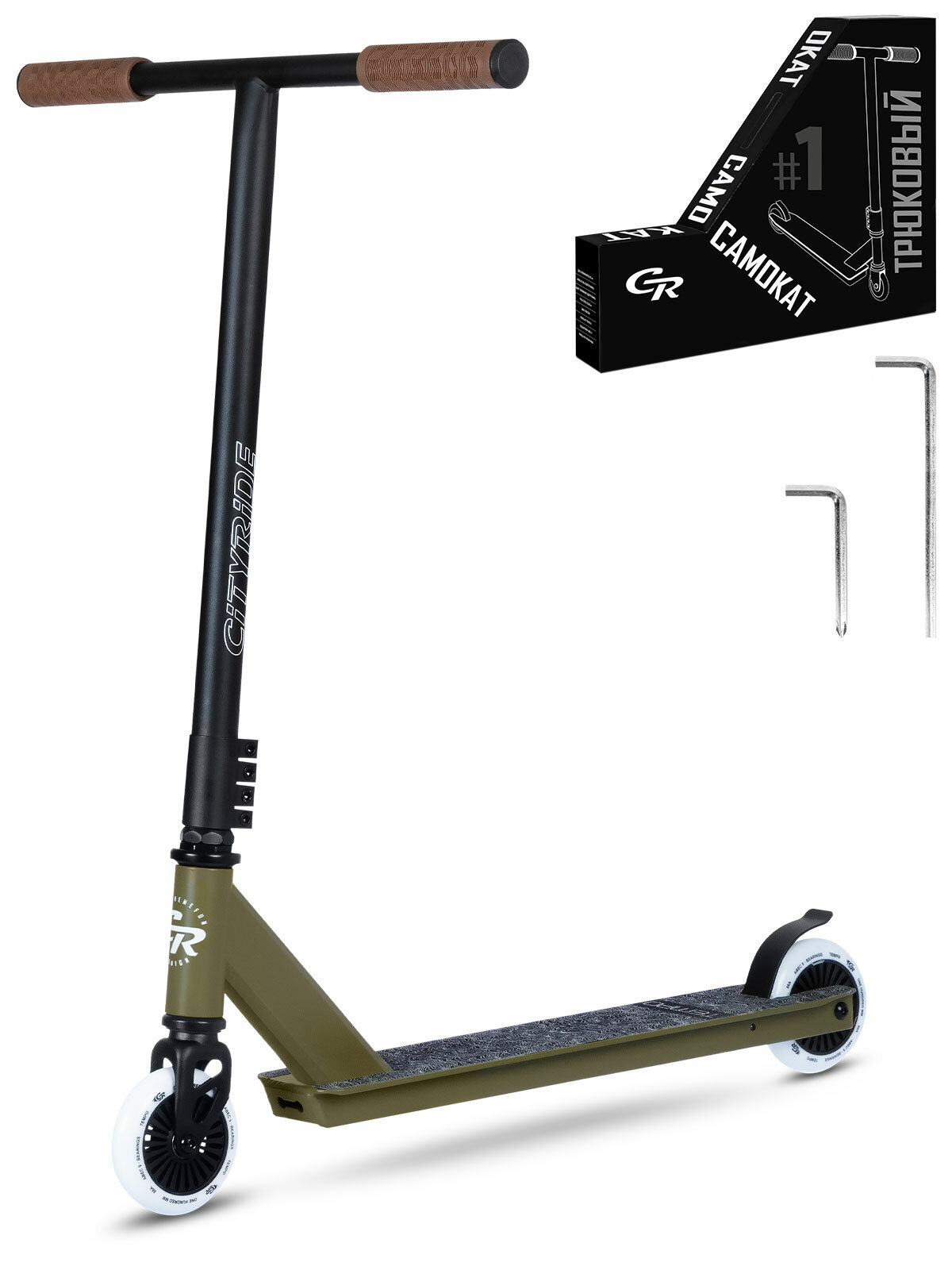 Самокат трюковый CITYRIDE TEMPO, PU 100/86 А, алюминиевая дека 33/10, стальной тормоз на пружине, CR-SS-04TTQ