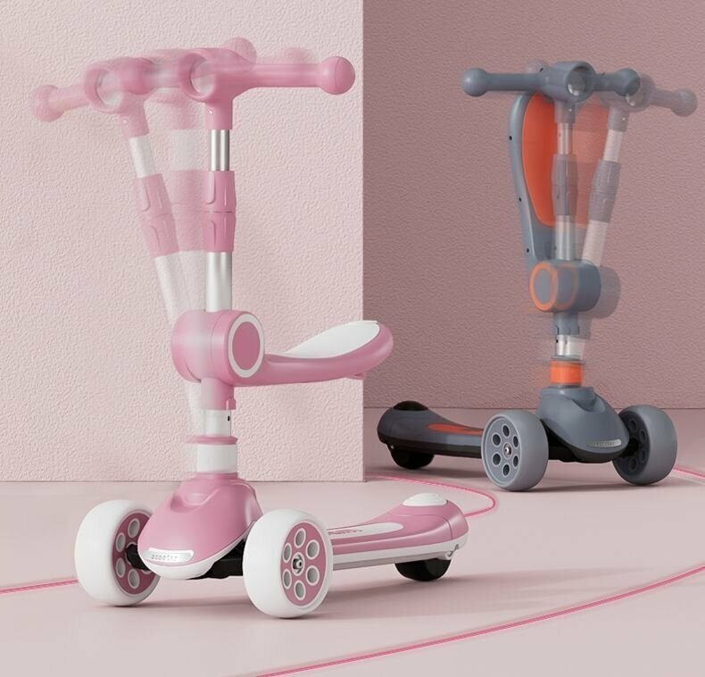 Самокат детский трехколесный COMIRON Yeenot "Зверята", регулируемая складная ручка, светящиеся колеса 110 и 75 мм, нагрузка до 40 кг, розовый / 1 шт.