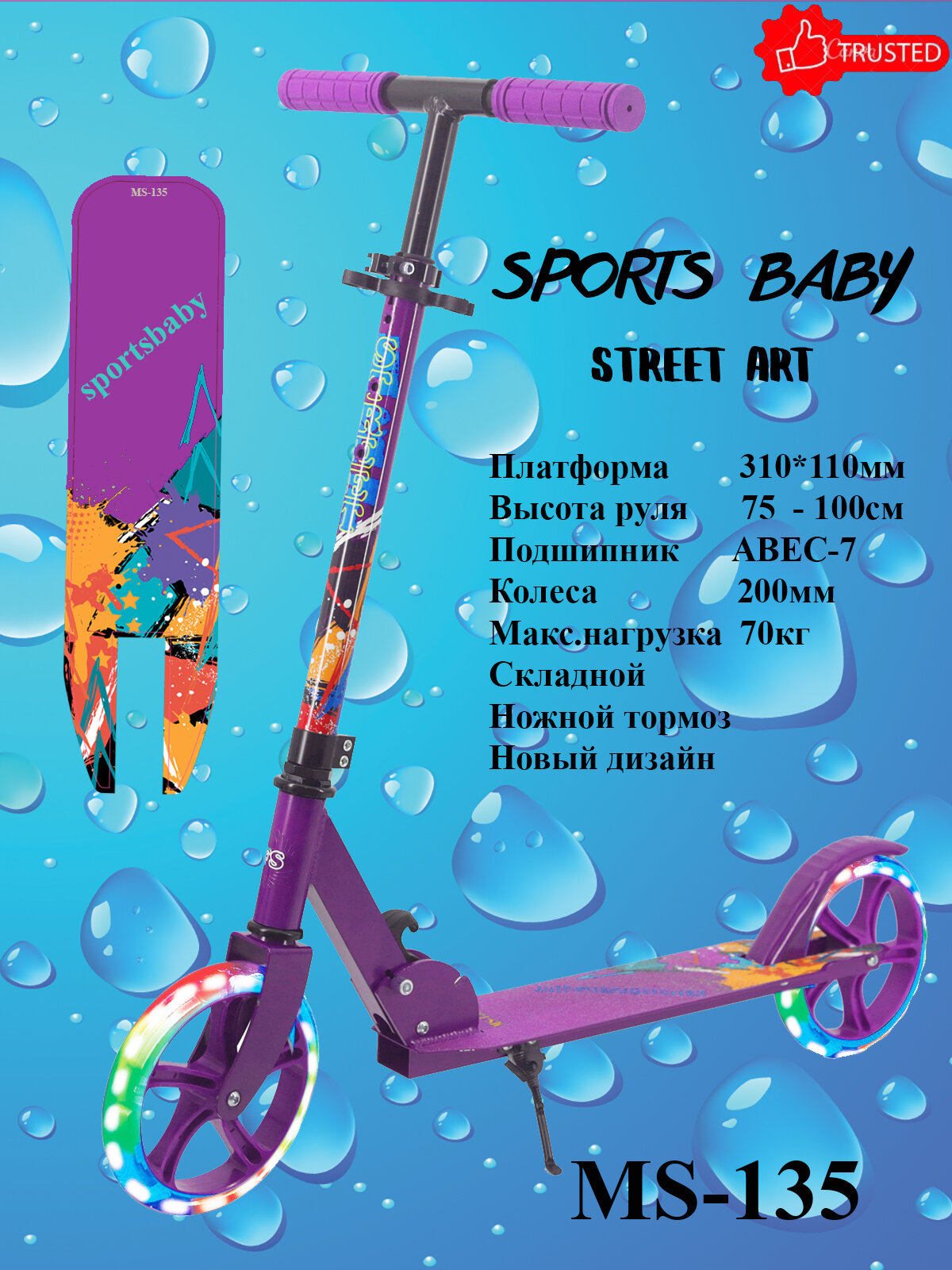 Самокат Sportsbaby Street Art-200 MS-135 фиолетовый светящиеся колеса интересное: