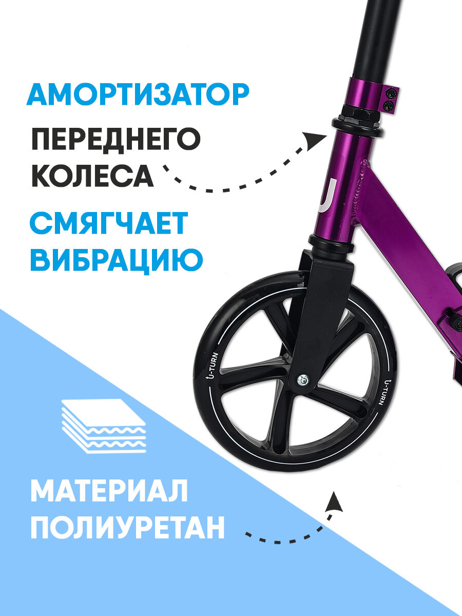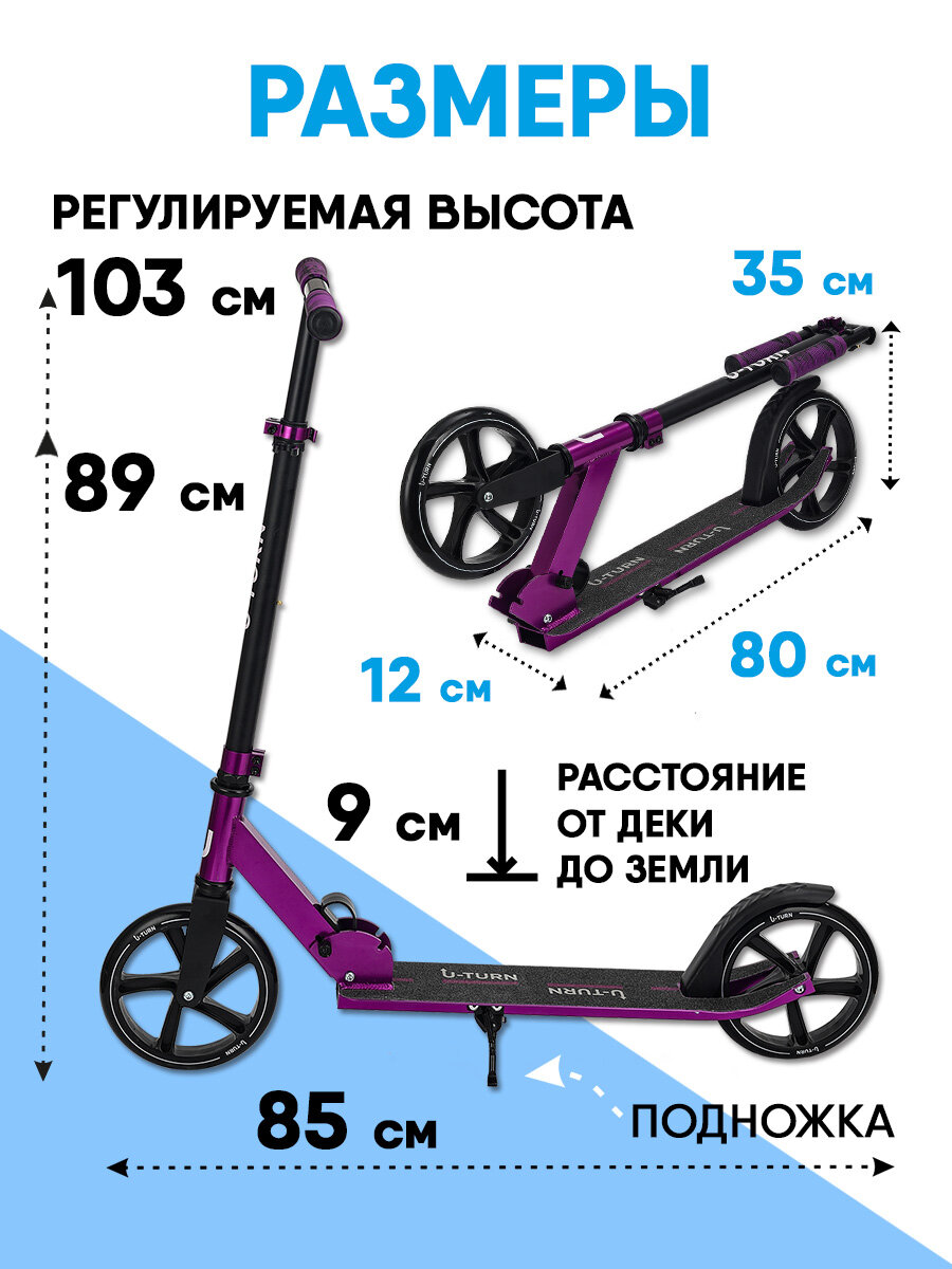 СохранитьСамокат U-Turn серия "COMFORT+" двухколесный, регулировка высоты руля, складной, нагрузка до 100 кг, фиолетовый. интересное: