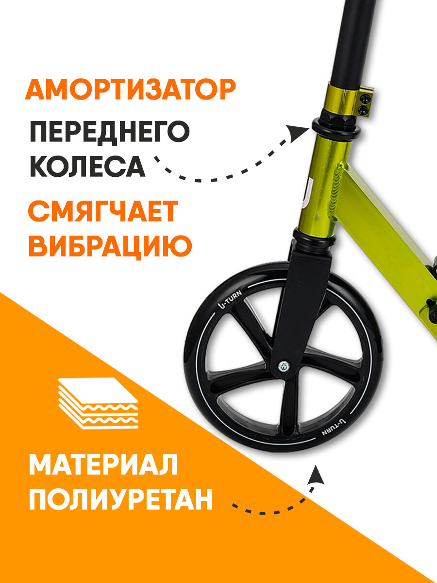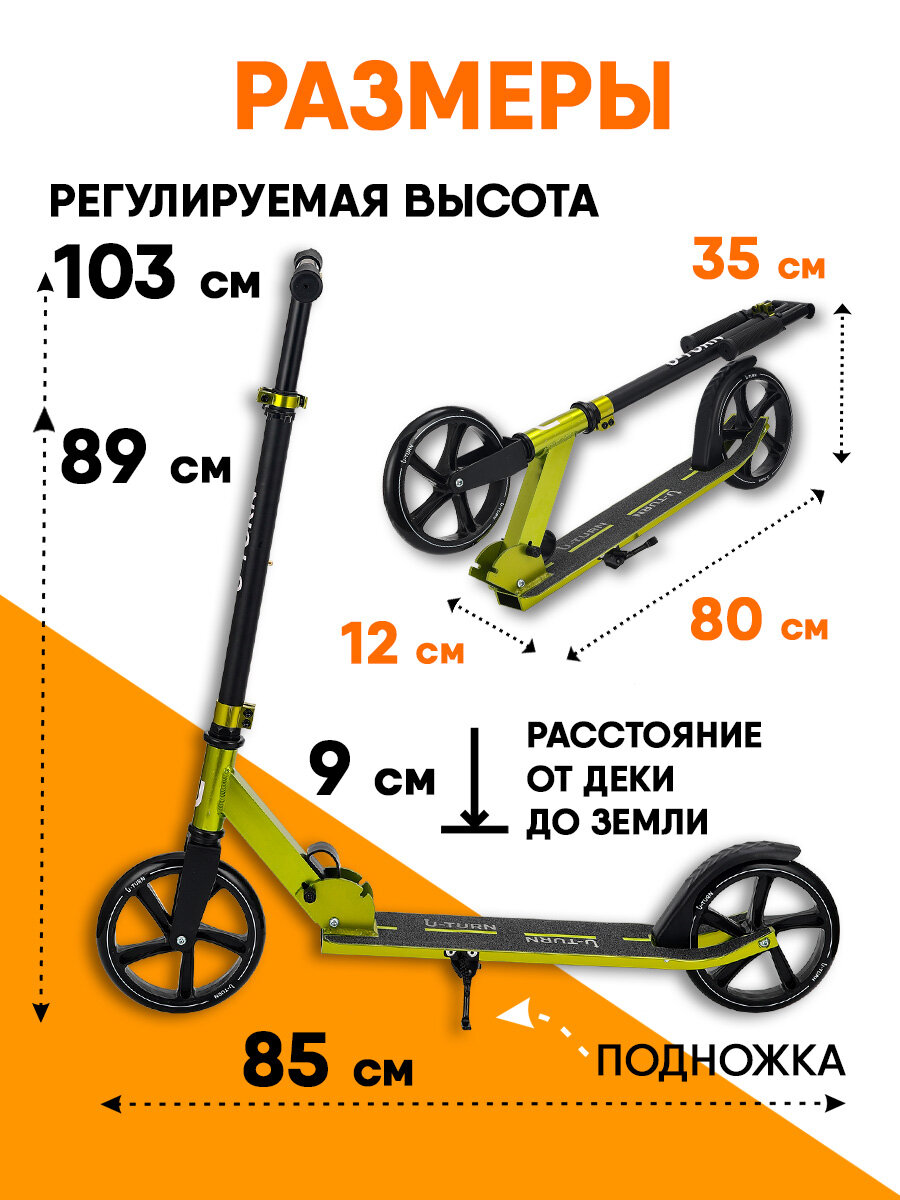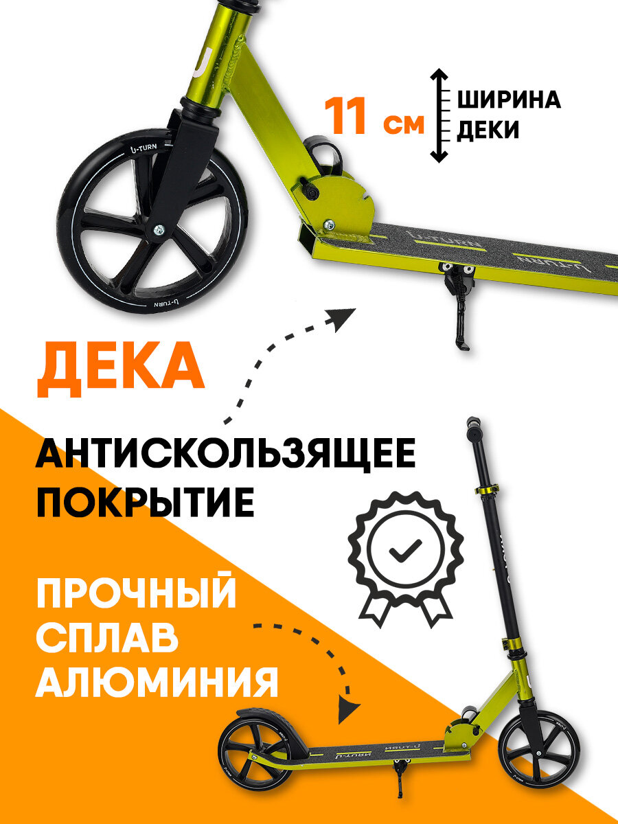 СохранитьСамокат U-Turn серия "COMFORT+" двухколесный, регулировка высоты руля, складной, нагрузка до 100 кг, зеленый. интересное: