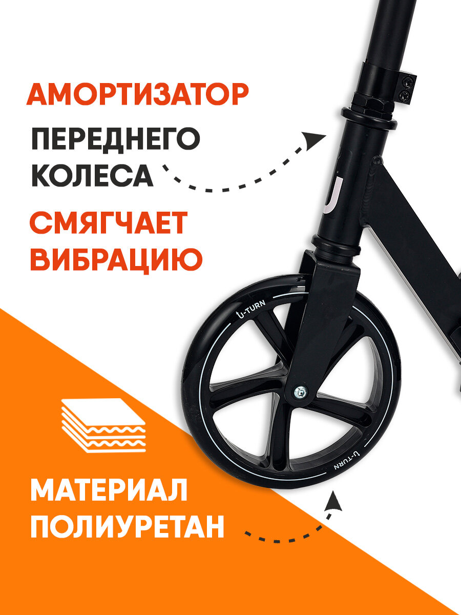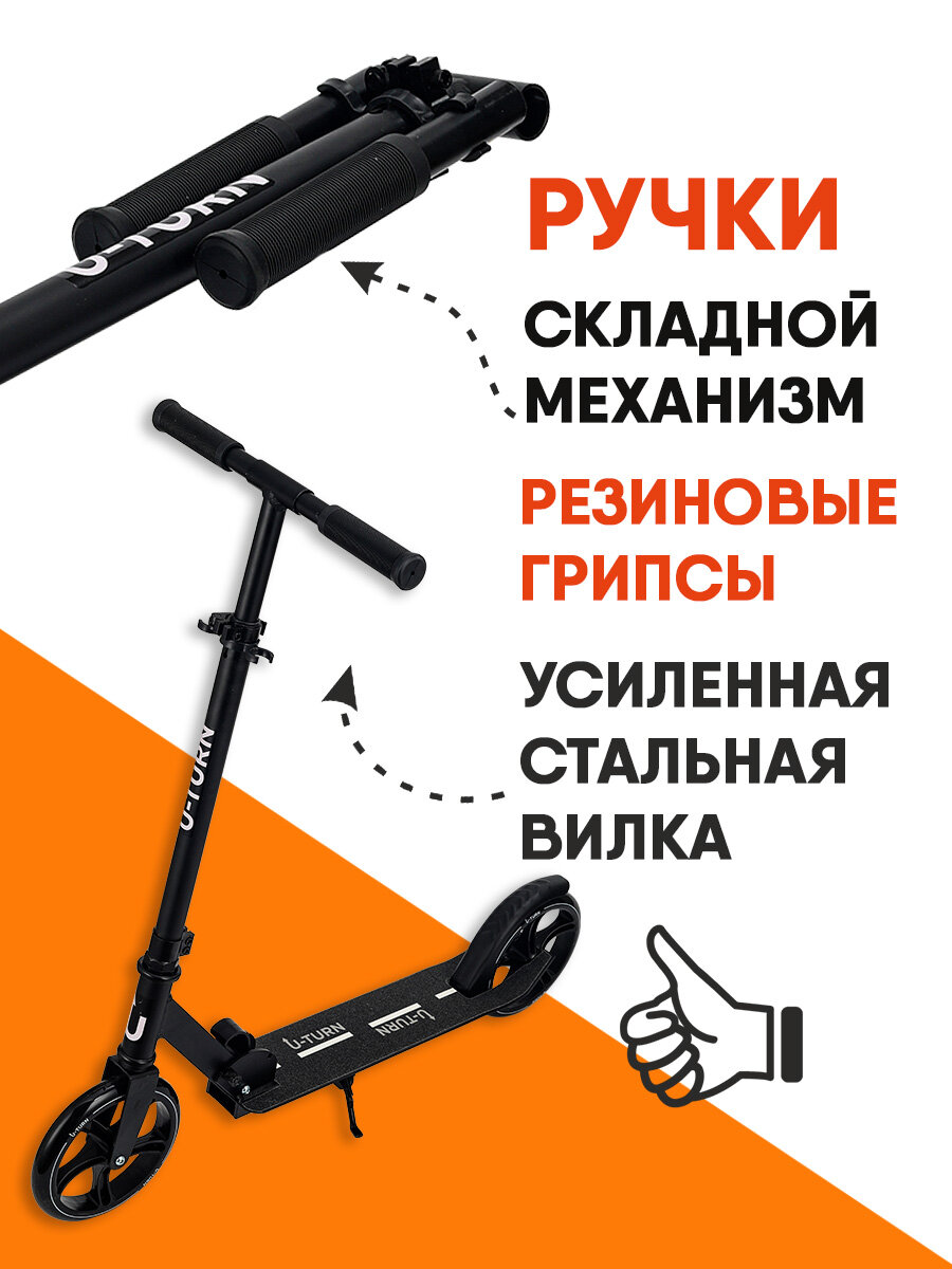 Самокат U-Turn серия "COMFORT+" двухколесный, регулировка высоты руля, складной, нагрузка до 100 кг, желтый