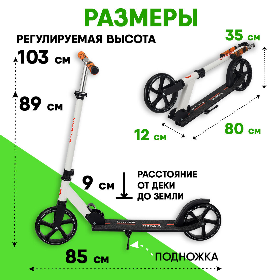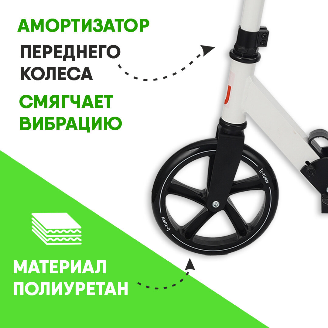 Самокат U-Turn серия "COMFORT+" двухколесный, регулировка высоты руля, складной, нагрузка до 100 кг, зеленый.