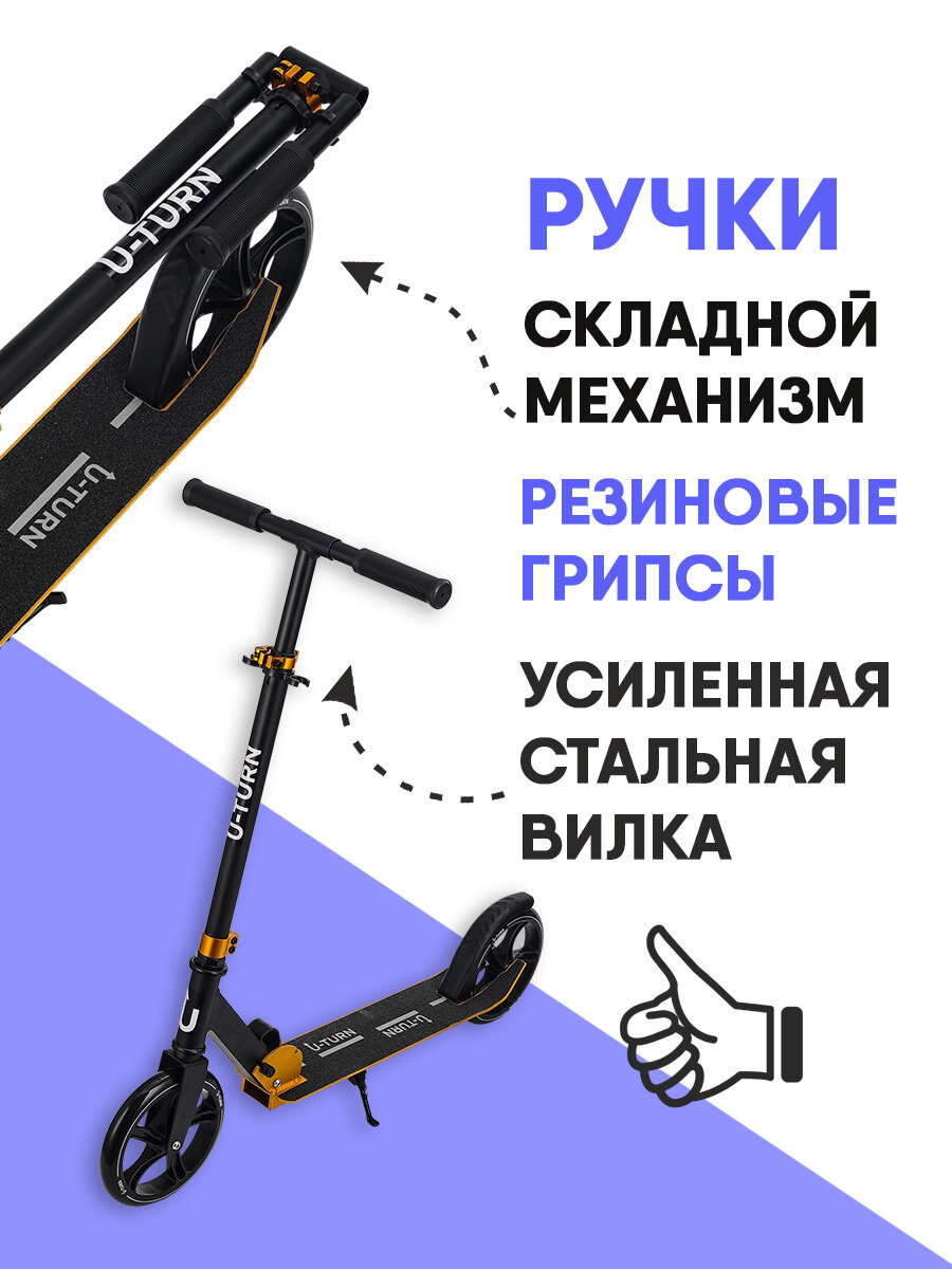 Самокат U-Turn серия "COMFORT+" двухколесный, регулировка высоты руля, складной, нагрузка до 100 кг, желтый