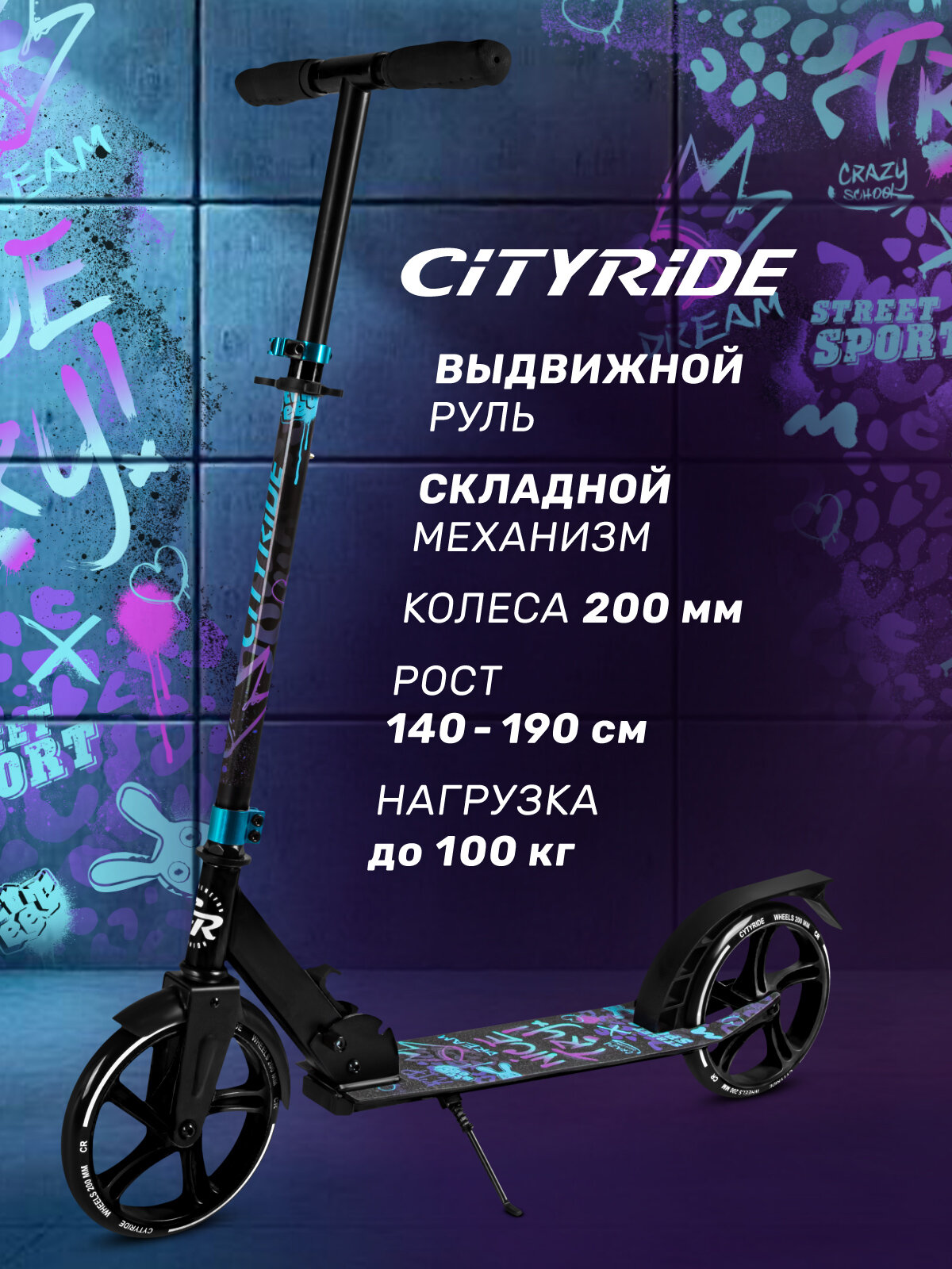 Самокат двухколесный складной CITYRIDE, колеса PU200 мм, дека 30*11 см, для подростков/детский, городской, CR-S2-01PPB