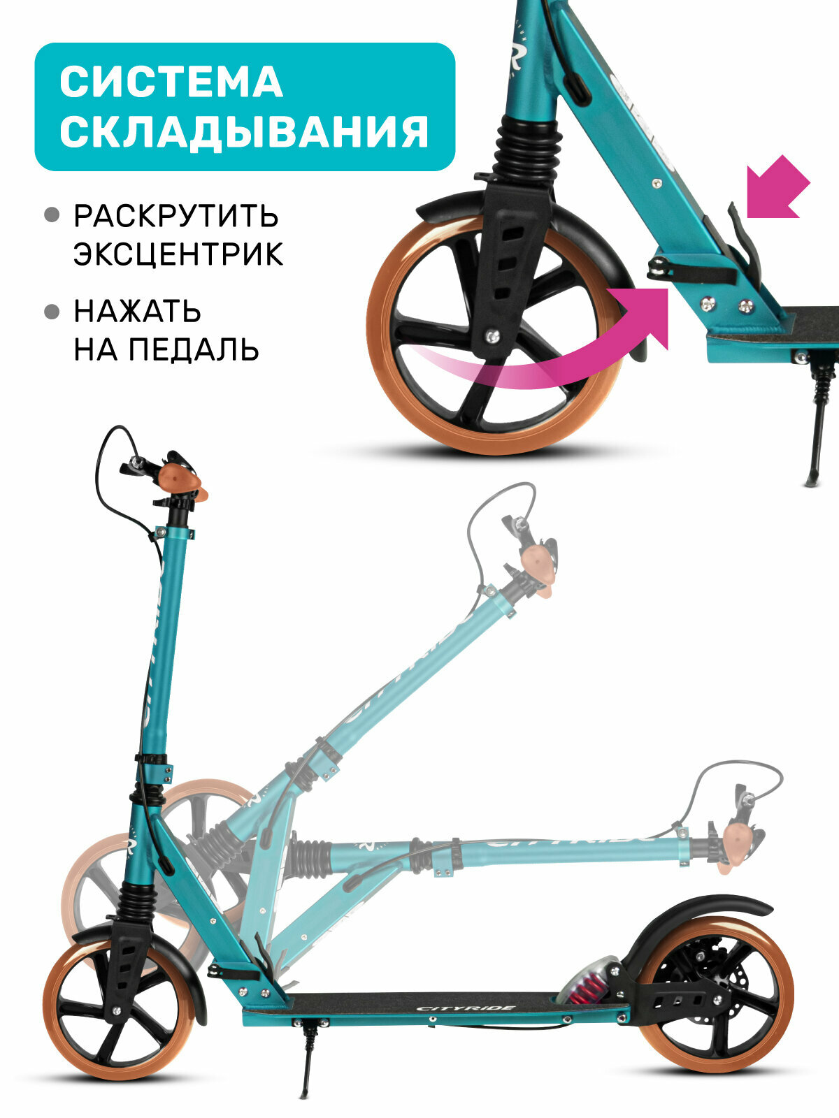 Самокат двухколесный CITYRIDE, складной, городской, PU 200 мм, дисковый тормоз/ручной тормоз, замок на руле, CR-S2-04DV