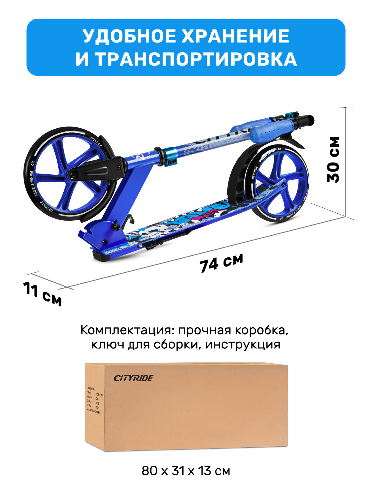 СохранитьСамокат двухколесный складной CITYRIDE, колеса PU200 мм, дека 30*11 см, для подростков/детский, городской, CR-S2-01SB интересное: