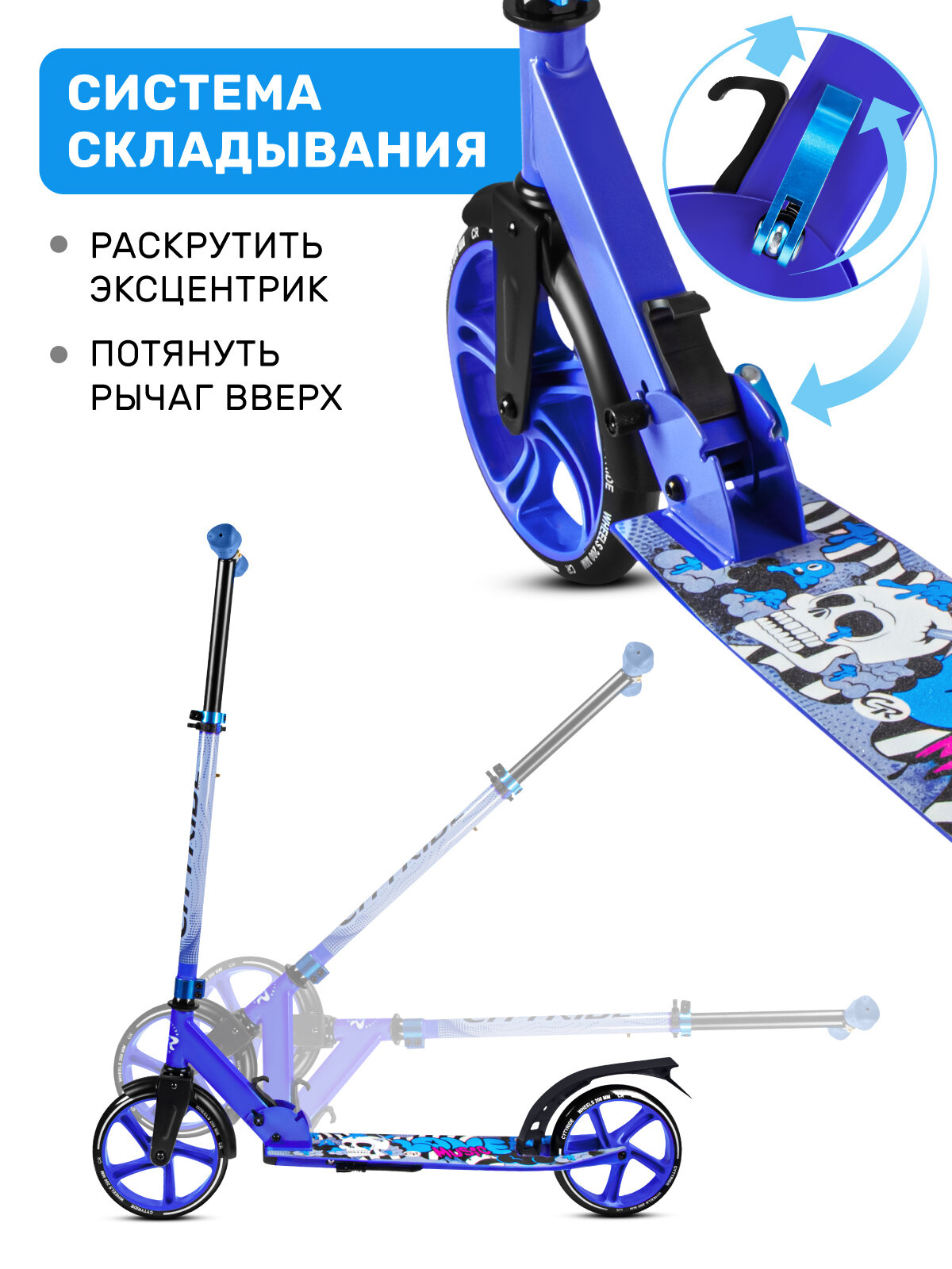 Самокат двухколесный CITYRIDE, складной, колеса PVC 120/120, регулируемый руль, CR-S2-09BL