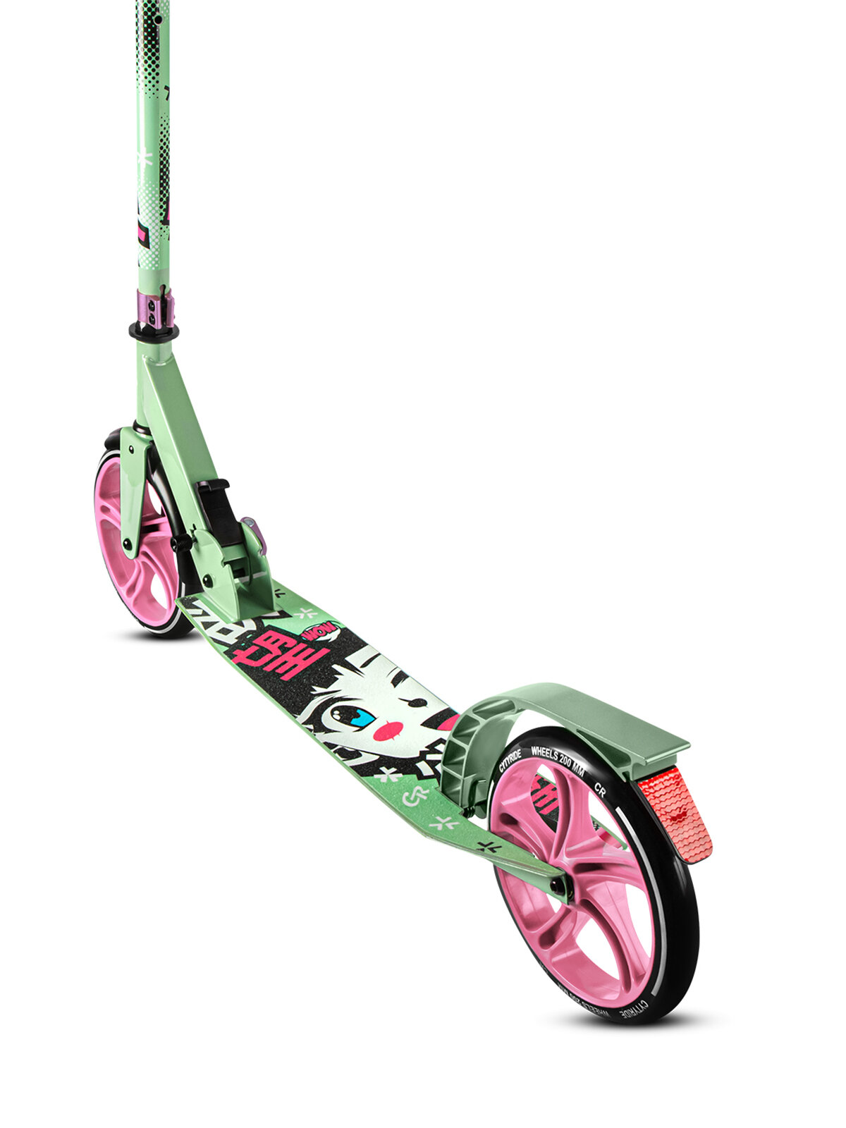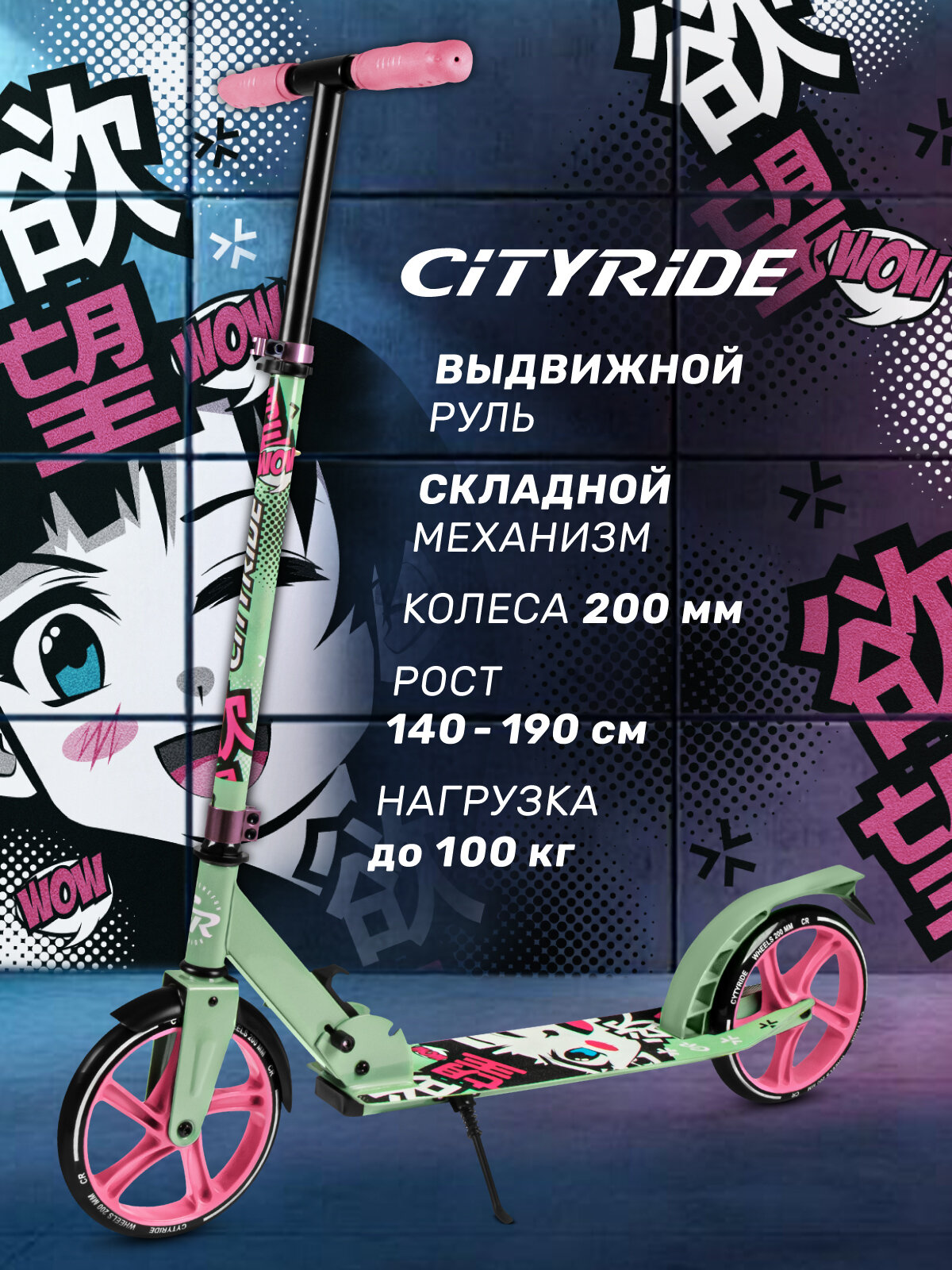 Самокат двухколесный ТМ CITYRIDE, складной, колеса светятся PU 120/120, ручной тормоз, подножка, CR-S2-09GN