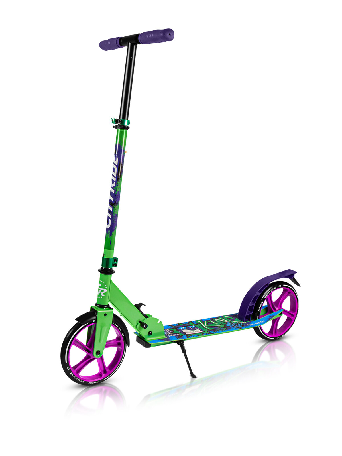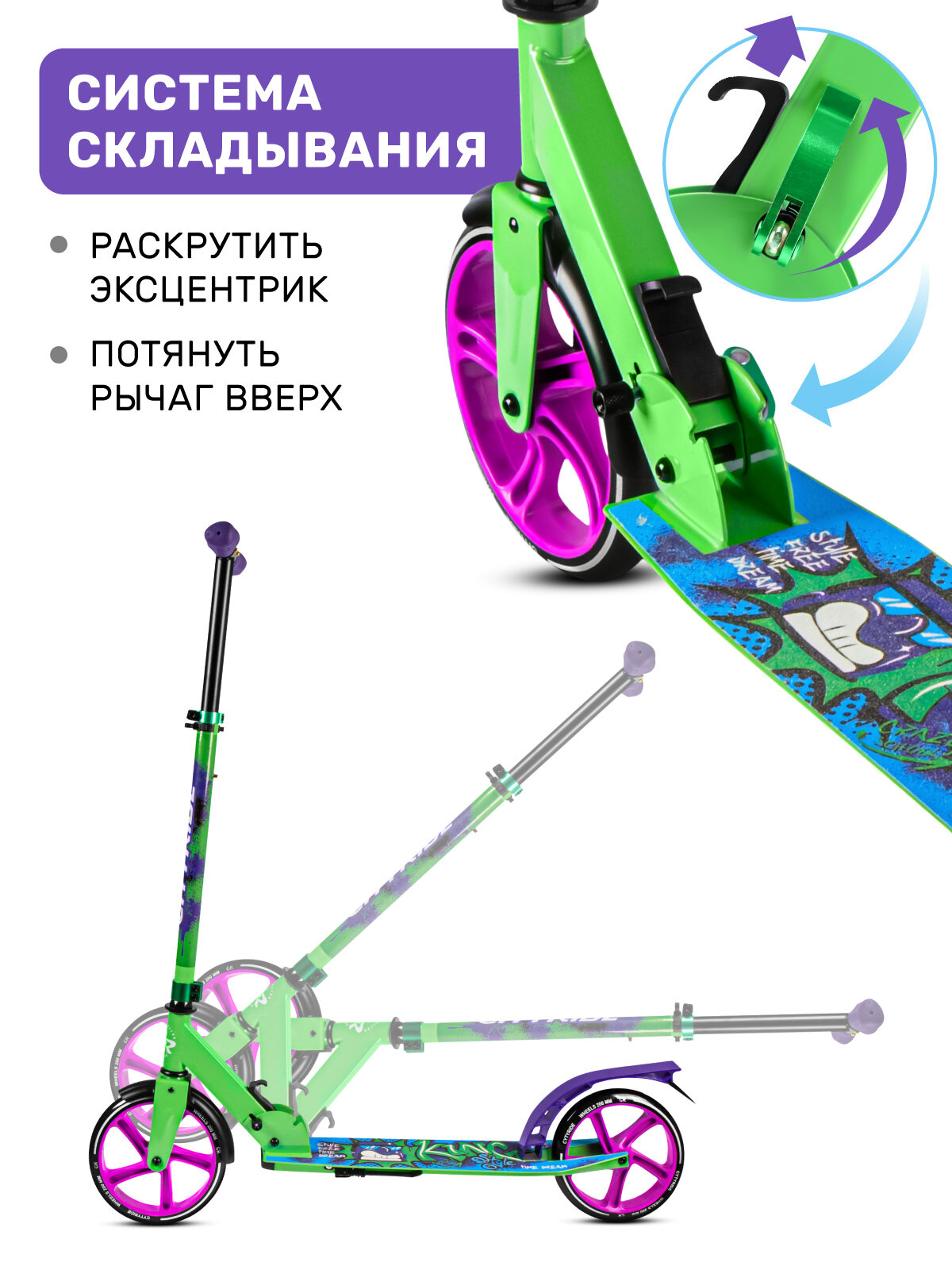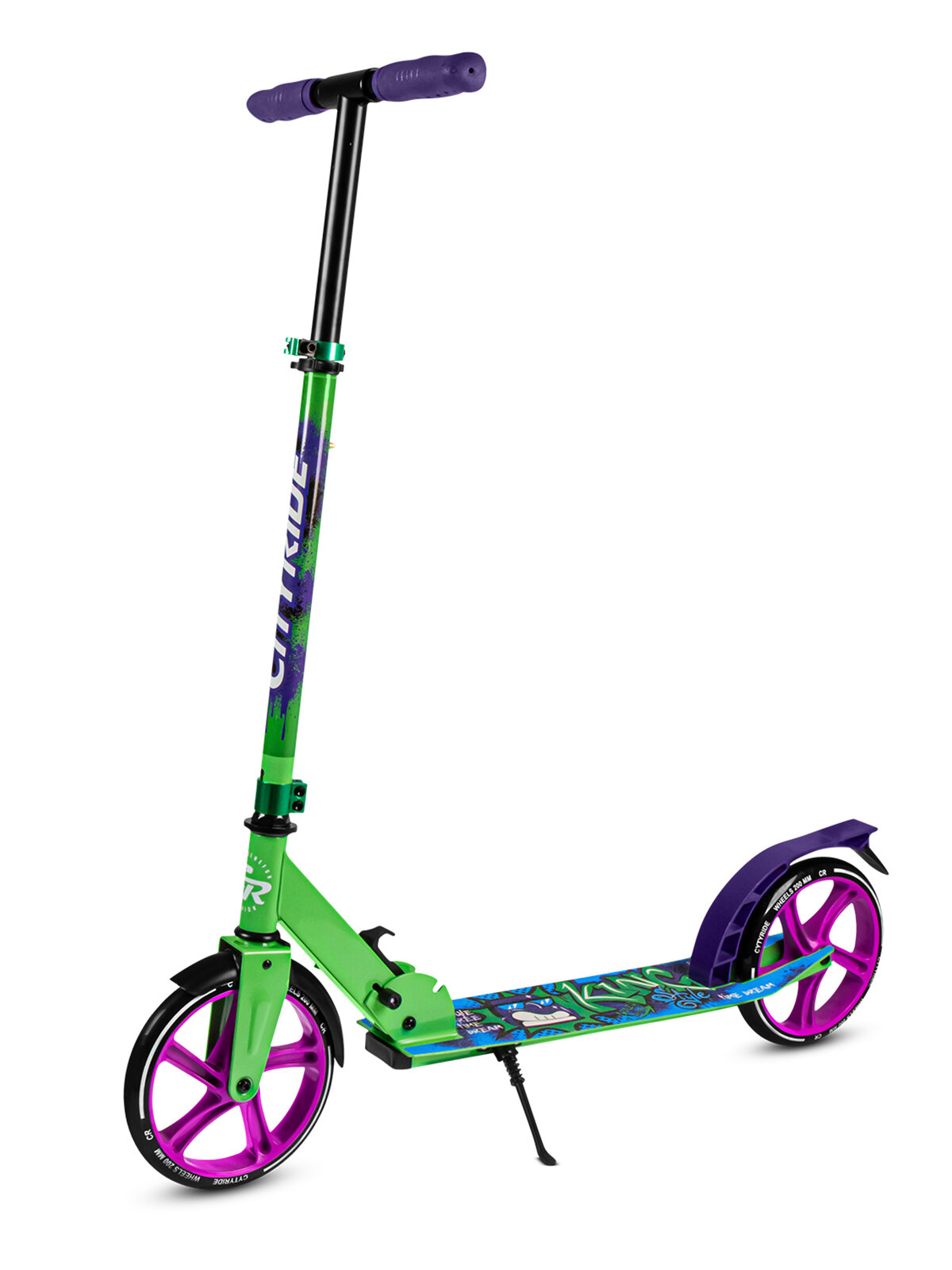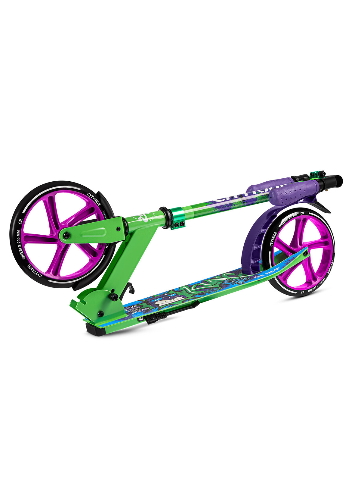 Самокат двухколесный ТМ CITYRIDE, складной, колеса светятся PU 120/120, ручной тормоз, подножка, CR-S2-09GN