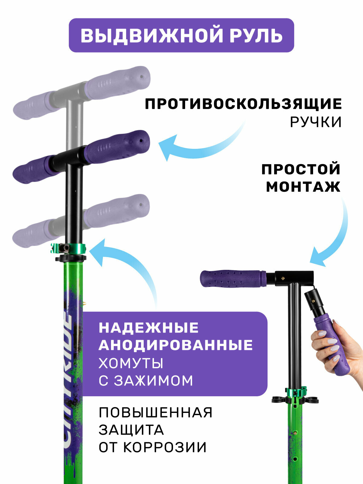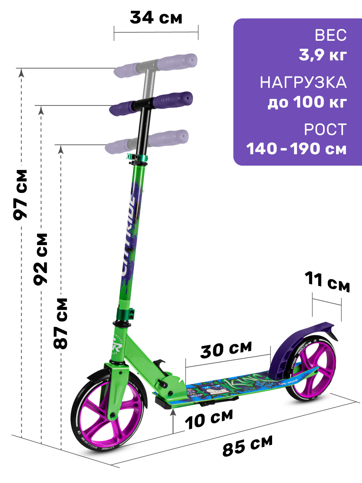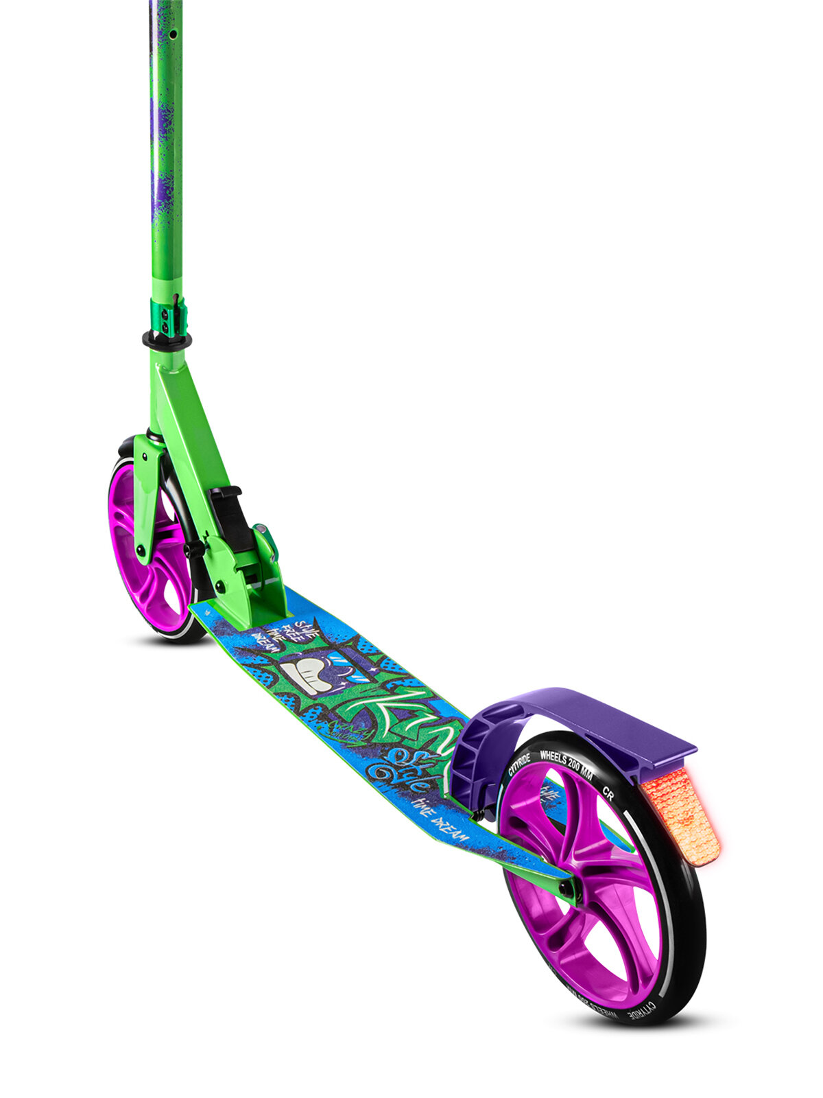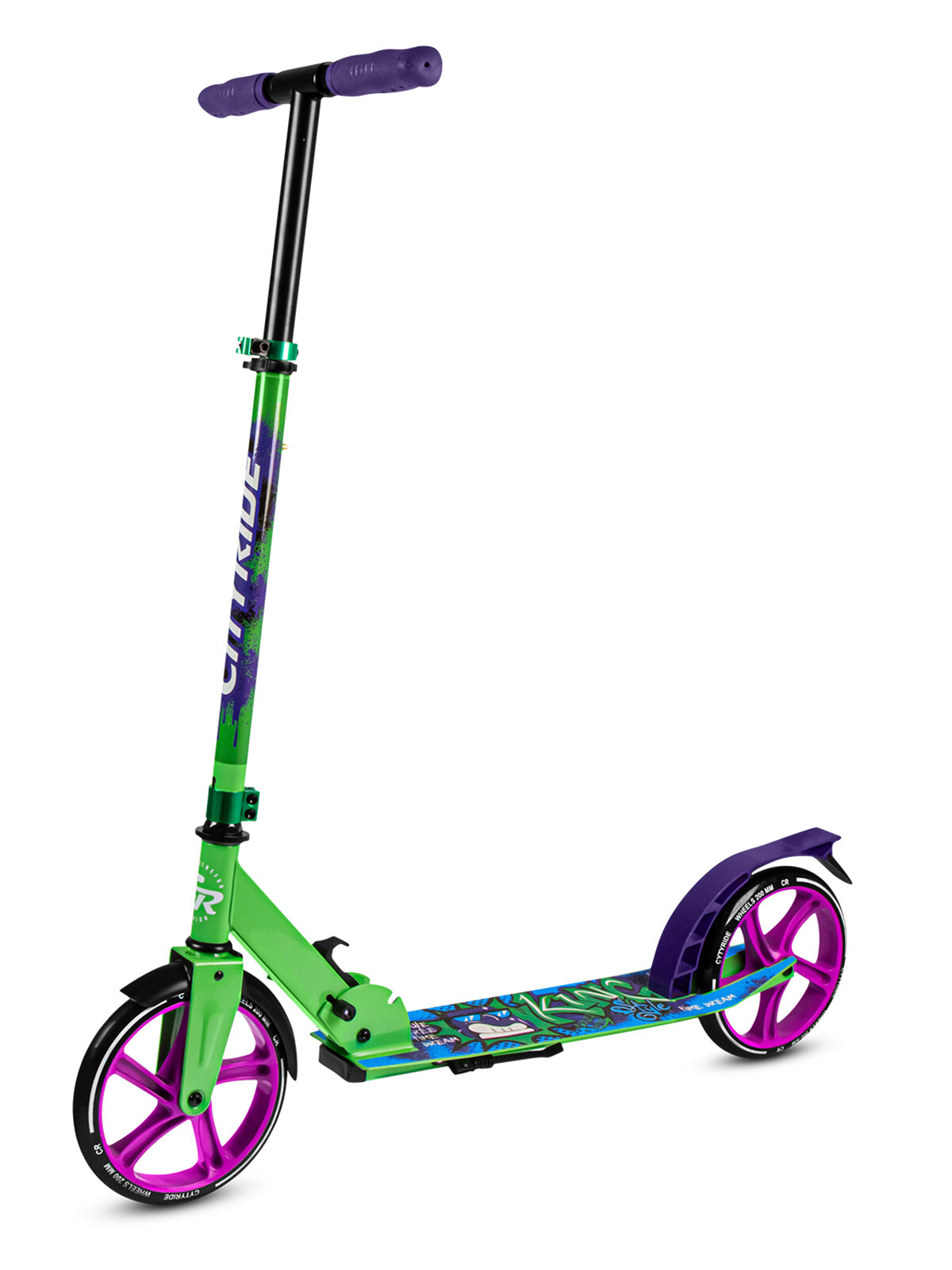 Самокат двухколесный ТМ CITYRIDE, складной, колеса светятся PU 120/120, ручной тормоз, подножка, CR-S2-09GN