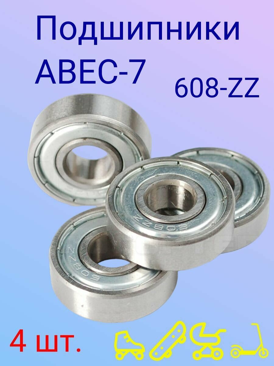 Купить Подшипники ABEC-7 608 ZZ скоростные . набор 4шт. для самоката , скейта , беговела , для роликов. Закрытый радиальный подшипник АВЕС7 608ZZ