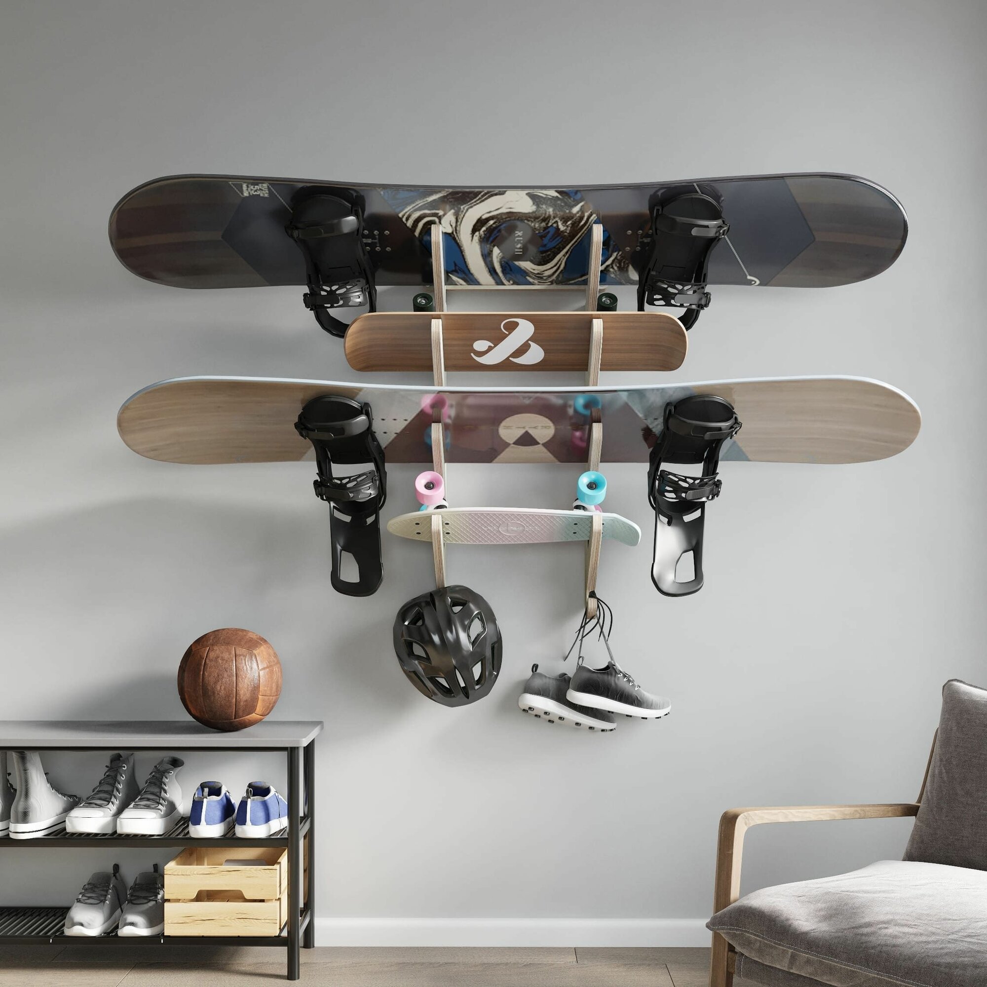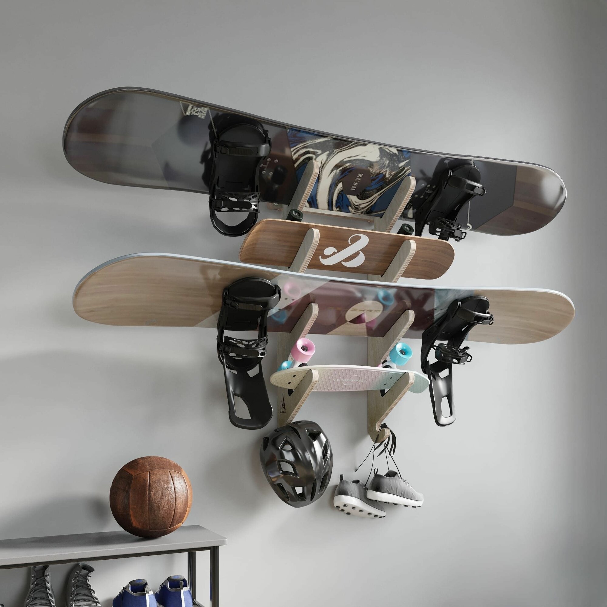 Настенный кронштейн Nord Bros, для скейтбордов/лонгбордов/сноубордов, береза/фанера