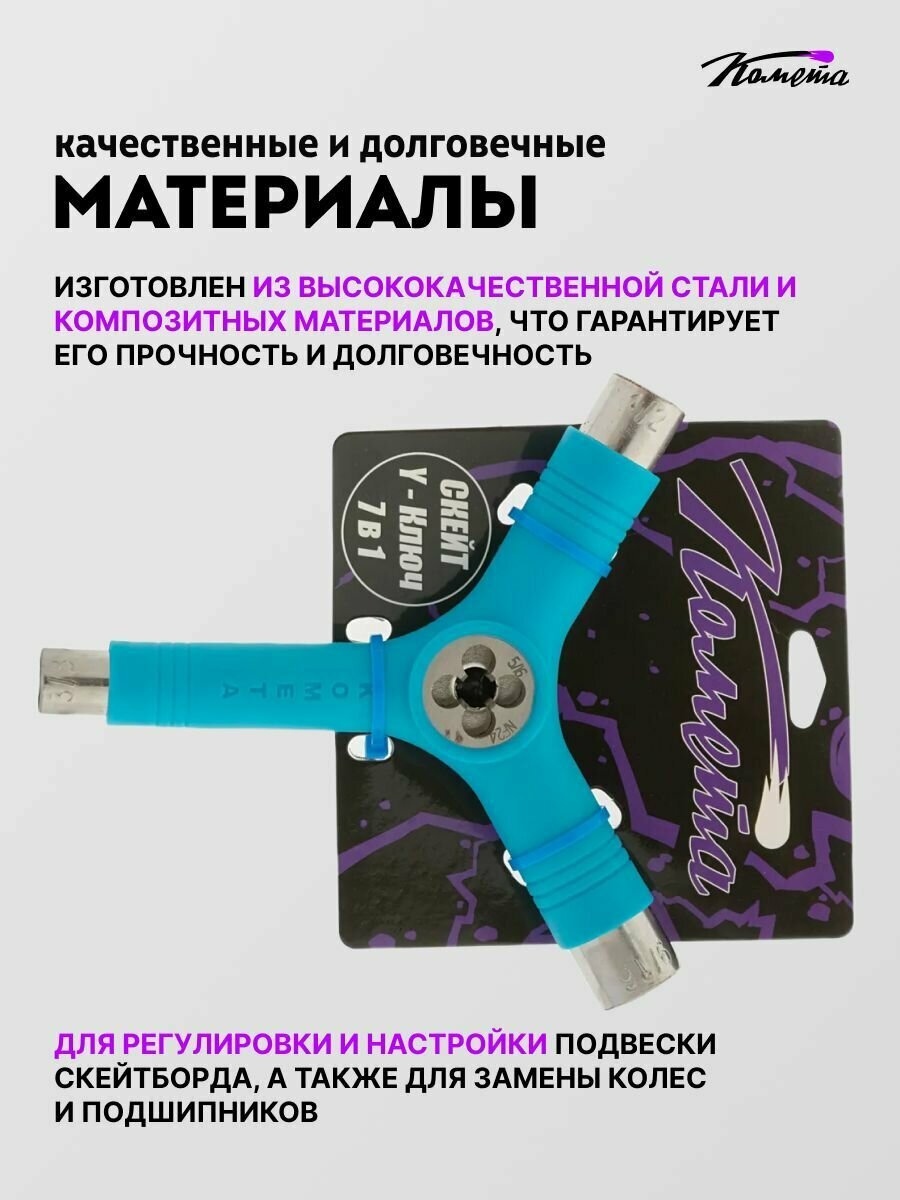 Ключ для трюкового скейтборда Y-образный синий Cometa Scooters интересное: