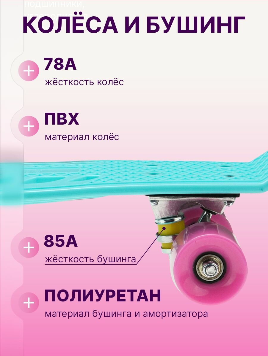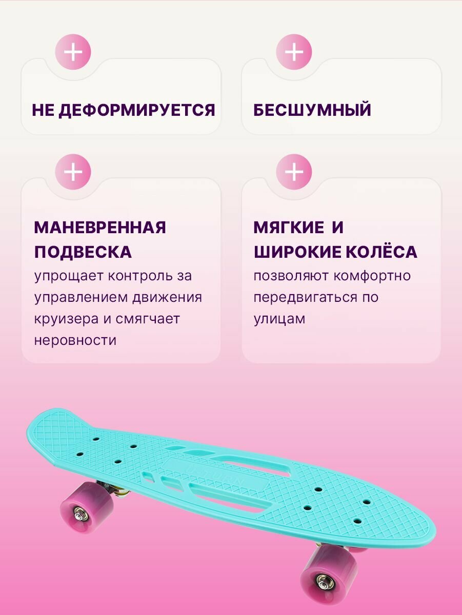 Скейт-Пенниборд U-Turn 56х14 см, колеса PU, влагостойкая, нагрузка до 80 кг, бирюзовый интересное: