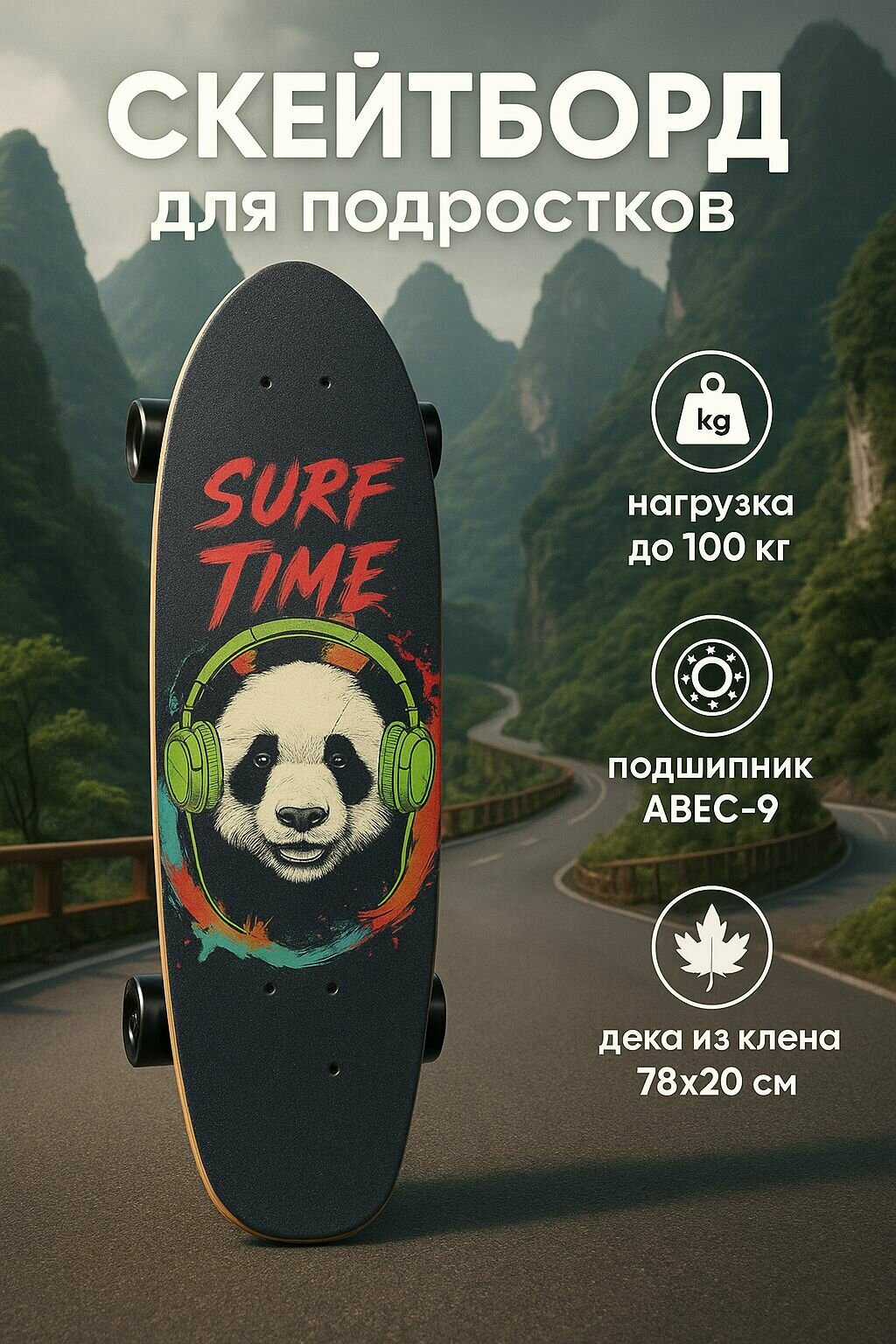 Скейтборд подростковый, нагрузка 100кг, круизер с декой из клена и подшипниками АВЕС-9 интересное: