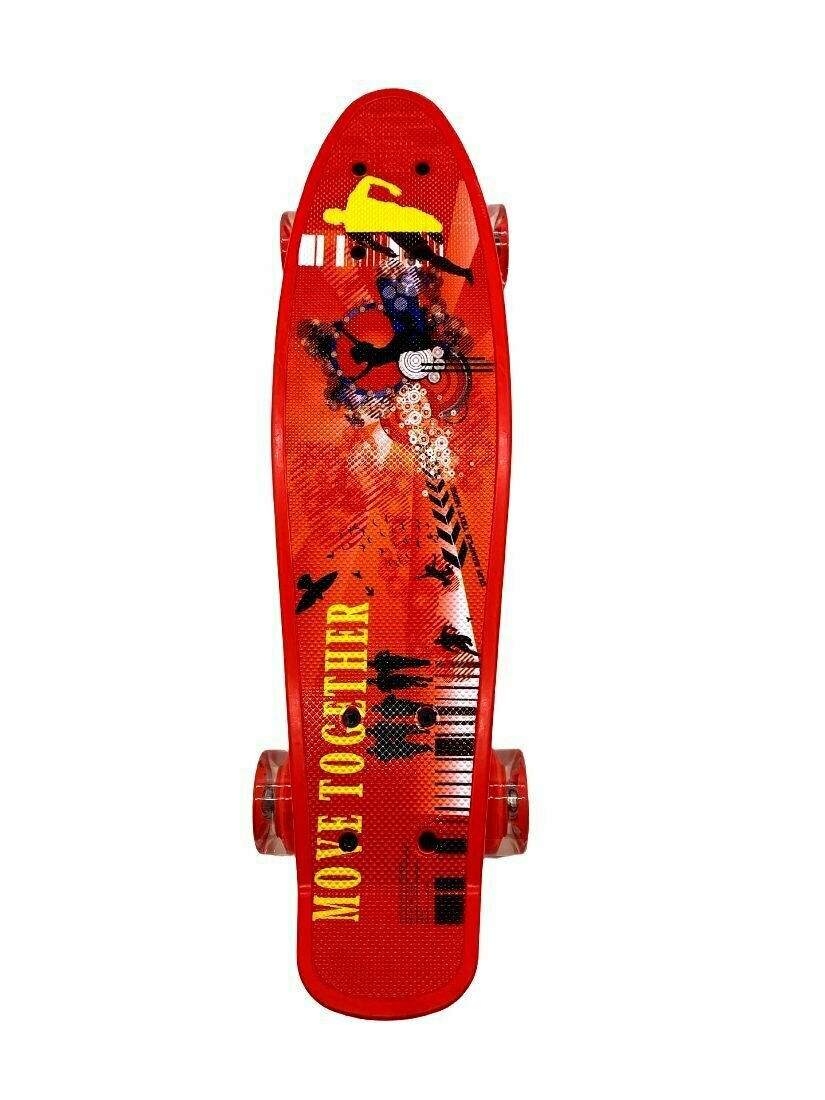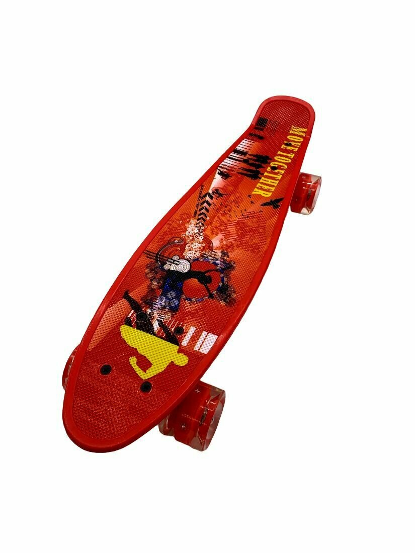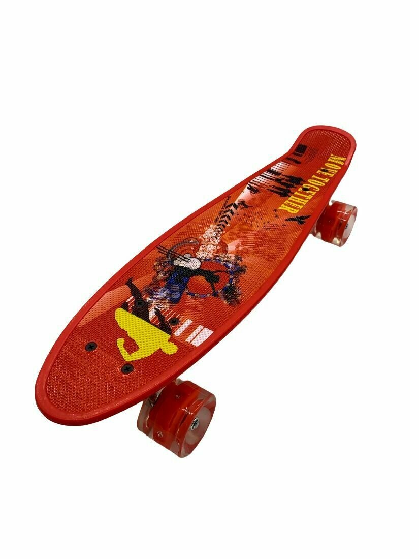 Пенниборд скейтборд Penny board скейт детский 54x14 см со светящимися колесами, высокопрочный пластик, Move Together красный интересное: