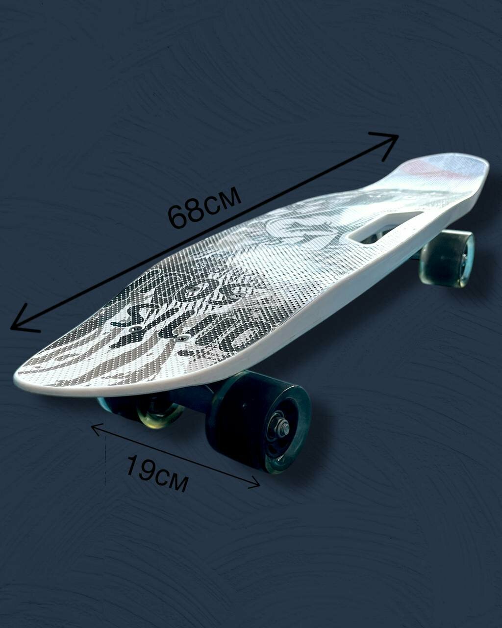 Пенни борд, 68см, 50кг, черно-белая, светящиеся колеса, с ручкой интересное: