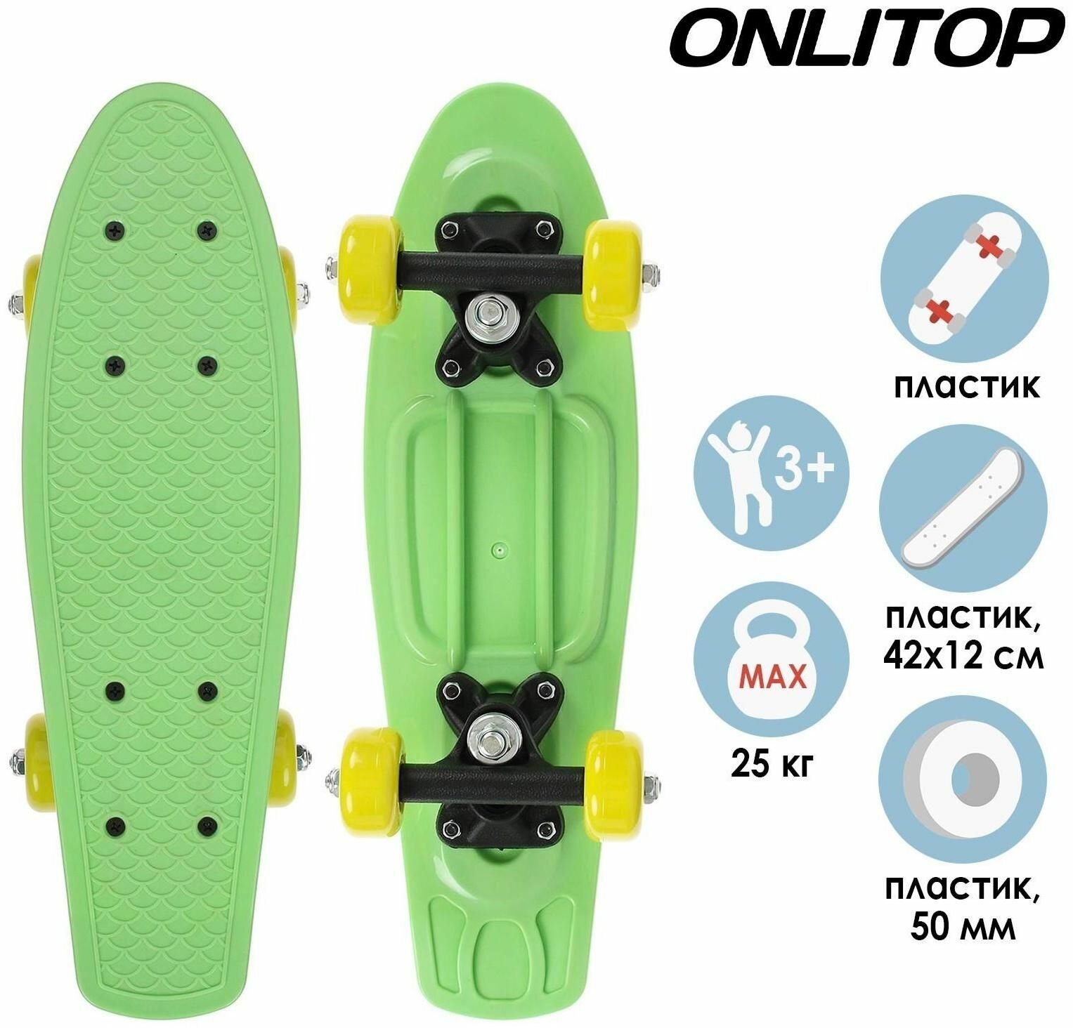 Купить Пенниборд 42х12 см, колёса PVC 50 мм, салатовый