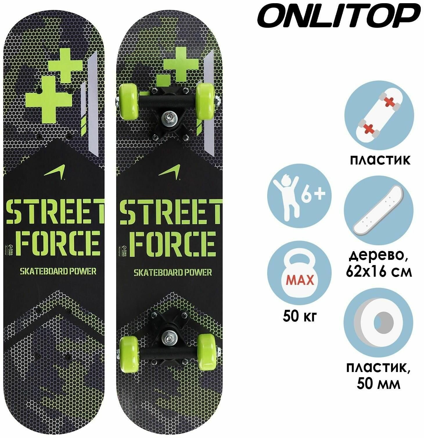 Купить Скейтборд STREET FORCE 62х16 см, колёса PVC d 50 мм