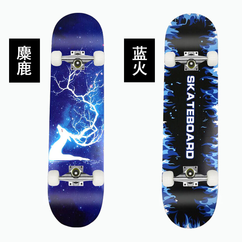 Скейтборд "Синий огонь", четырехколесный, двойной мост, для взрослых и детей