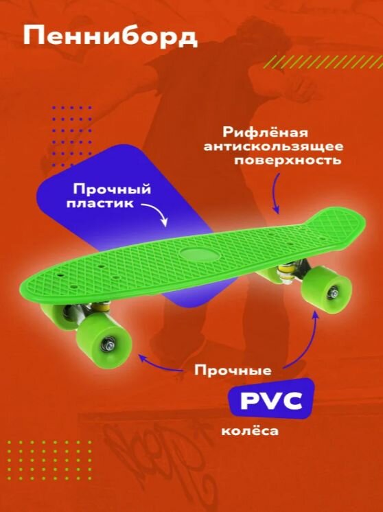 Пенни борд , Скейтборд детский 56 Х14 см, зеленый, возраст 4+ интересное: