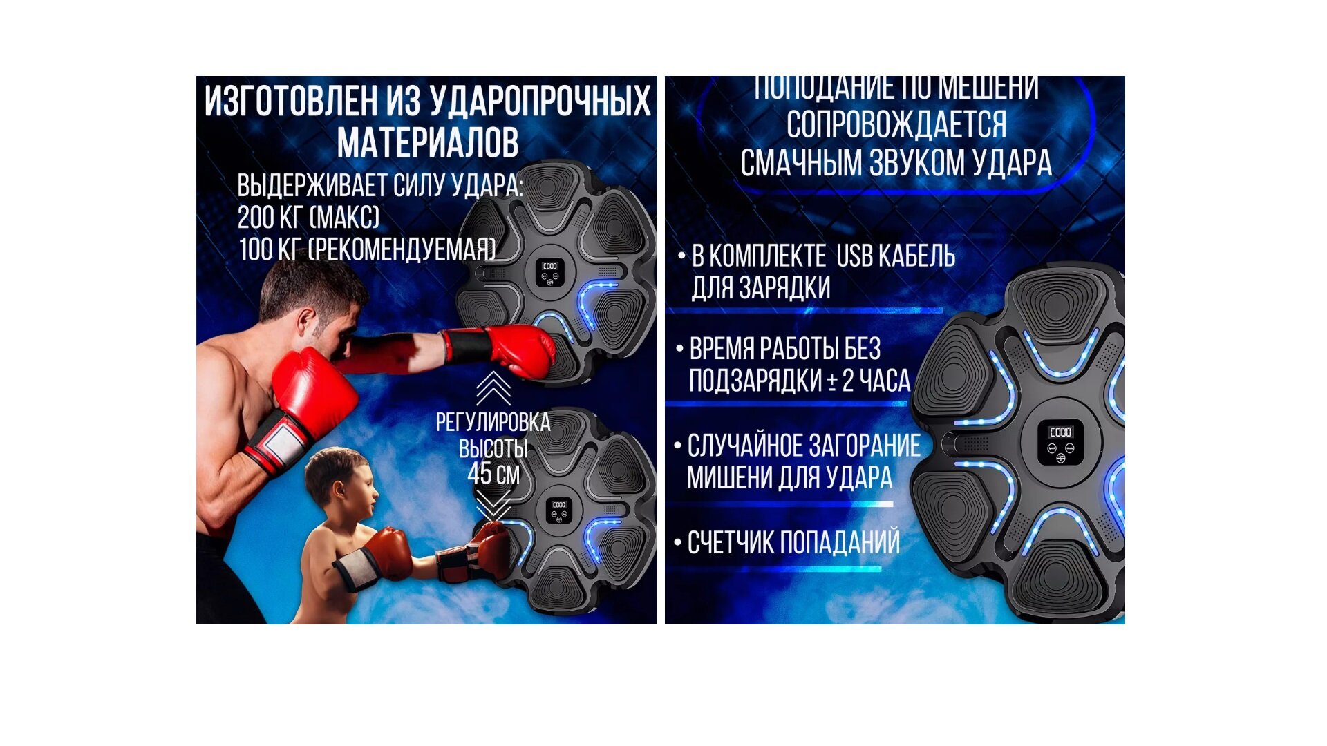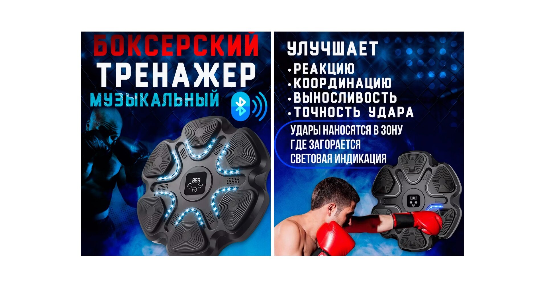 Ниже Вы можете прочитать отзывы на Интеллектуальный тренажер для бокса Intelligent Boxing Machine, Bluetooth, LED, Music + Перчатки, Черный, ознакомится с подробными характеристиками, посмотреть интересные обзоры и фотографии на Интеллектуальный тренажер для бокса Intelligent Boxing Machine, Bluetooth, LED, Music + Перчатки, Черный.