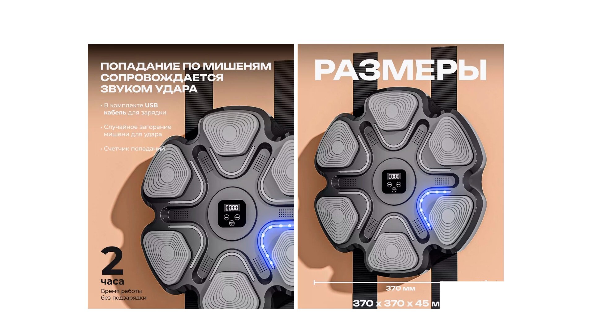 Интеллектуальный тренажер для бокса Intelligent Boxing Machine, Bluetooth, LED, Music + Перчатки, Черный интересное: