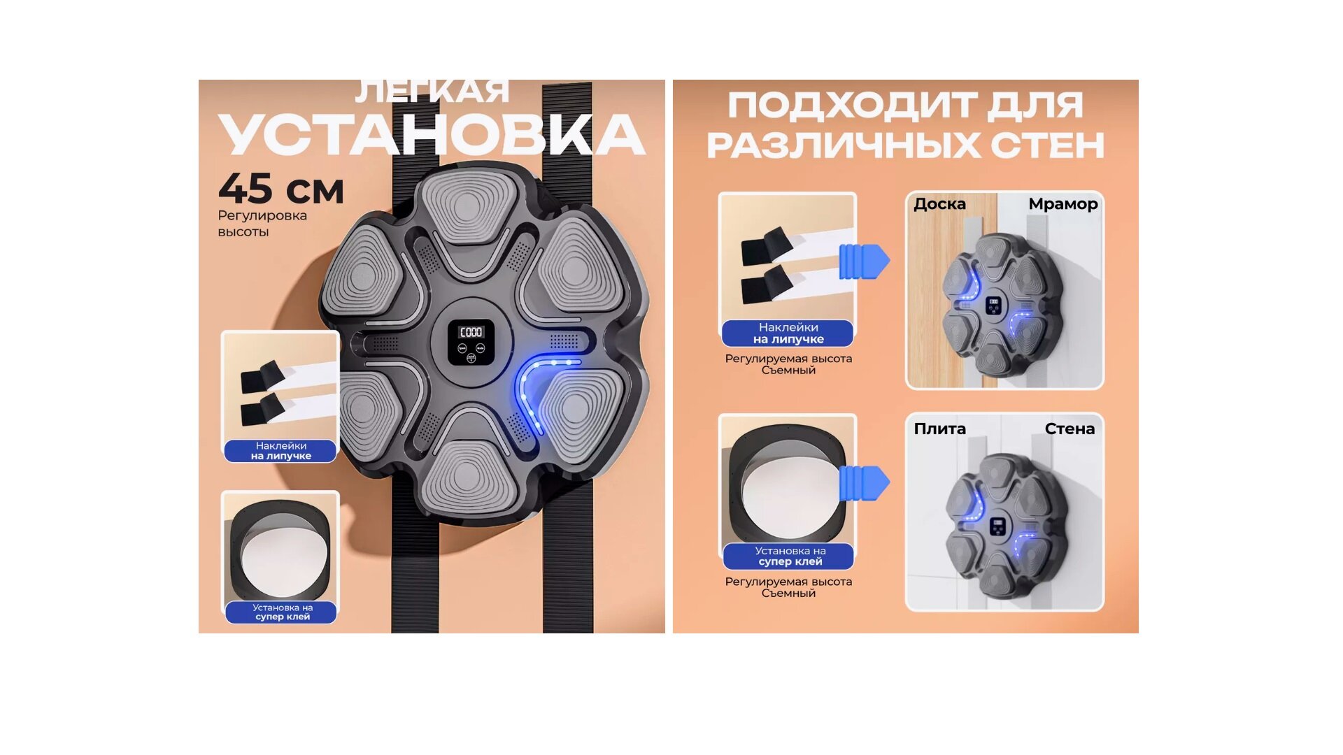 Настенный электронный Боксерский тренажер музыкальный, детский, интерактивный тренажер с музыкой, блютуз