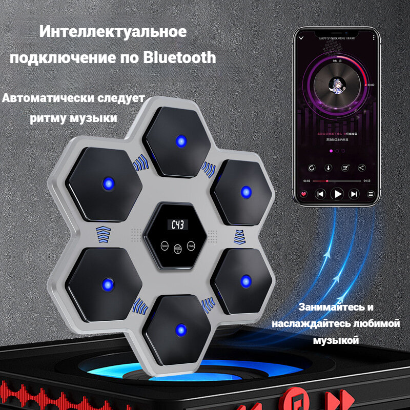Музыкальный боксерский тренажер Target Boxing, Bluetooth, световой отклик, серый интересное: