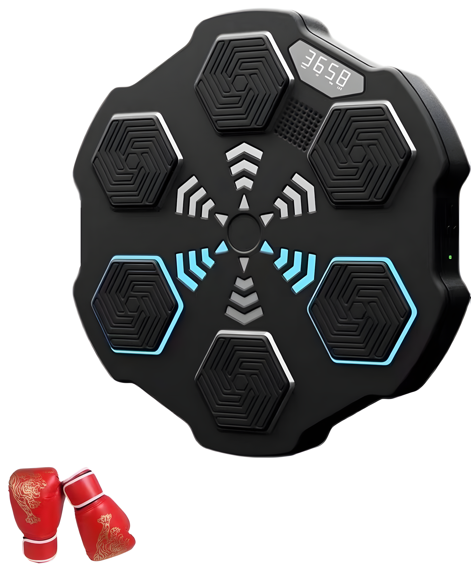 Настенный электронный тренажёр для бокса QJB-03 + черные перчатки с узором тигра для взрослых, черный