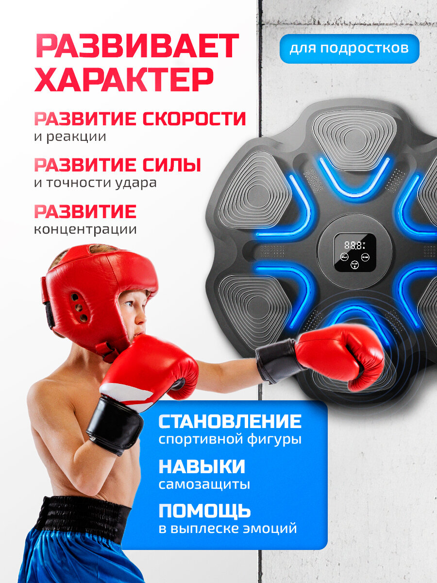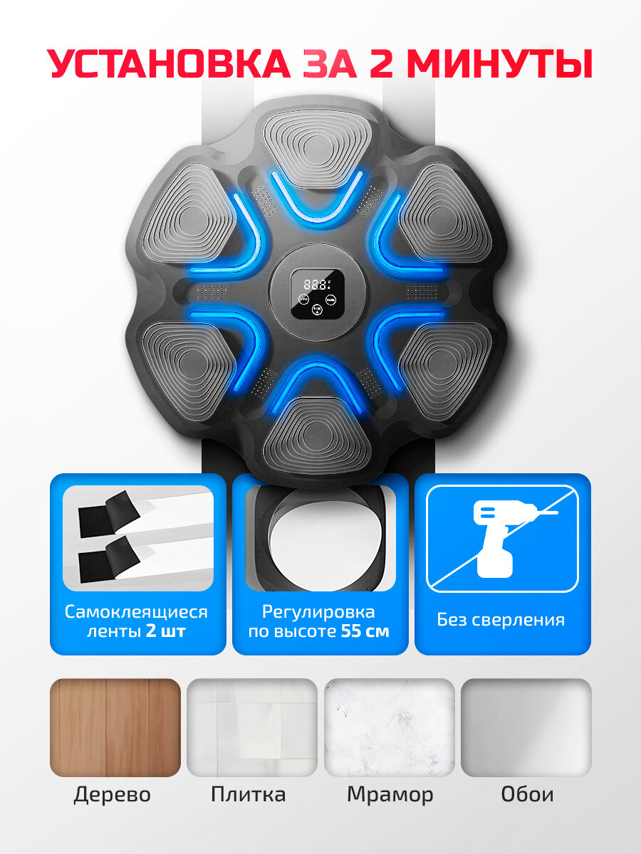 Тренажер для бокса Conflate, музыкальный, настенный, с Bluetooth, с перчатками, с подсветкой интересное: