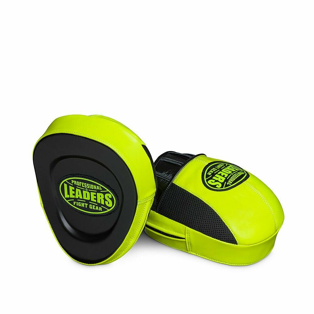 Лапы боксерские для тренировки, для отработки ударов тренерские LEADERS CURVED BUMBLEBEE (ONE, кожа, черный/желтый)