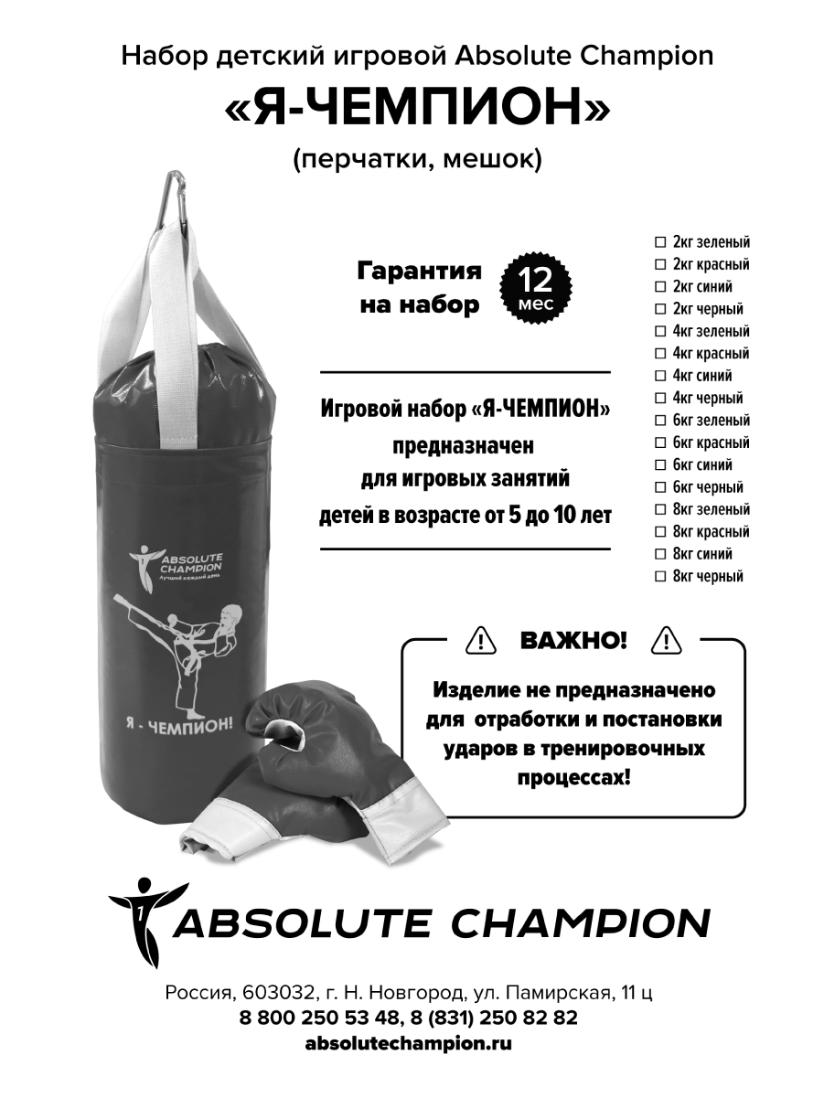 Набор для бокса груша боксерская детская 6 кг и перчатки боксерские детские черный интересное: