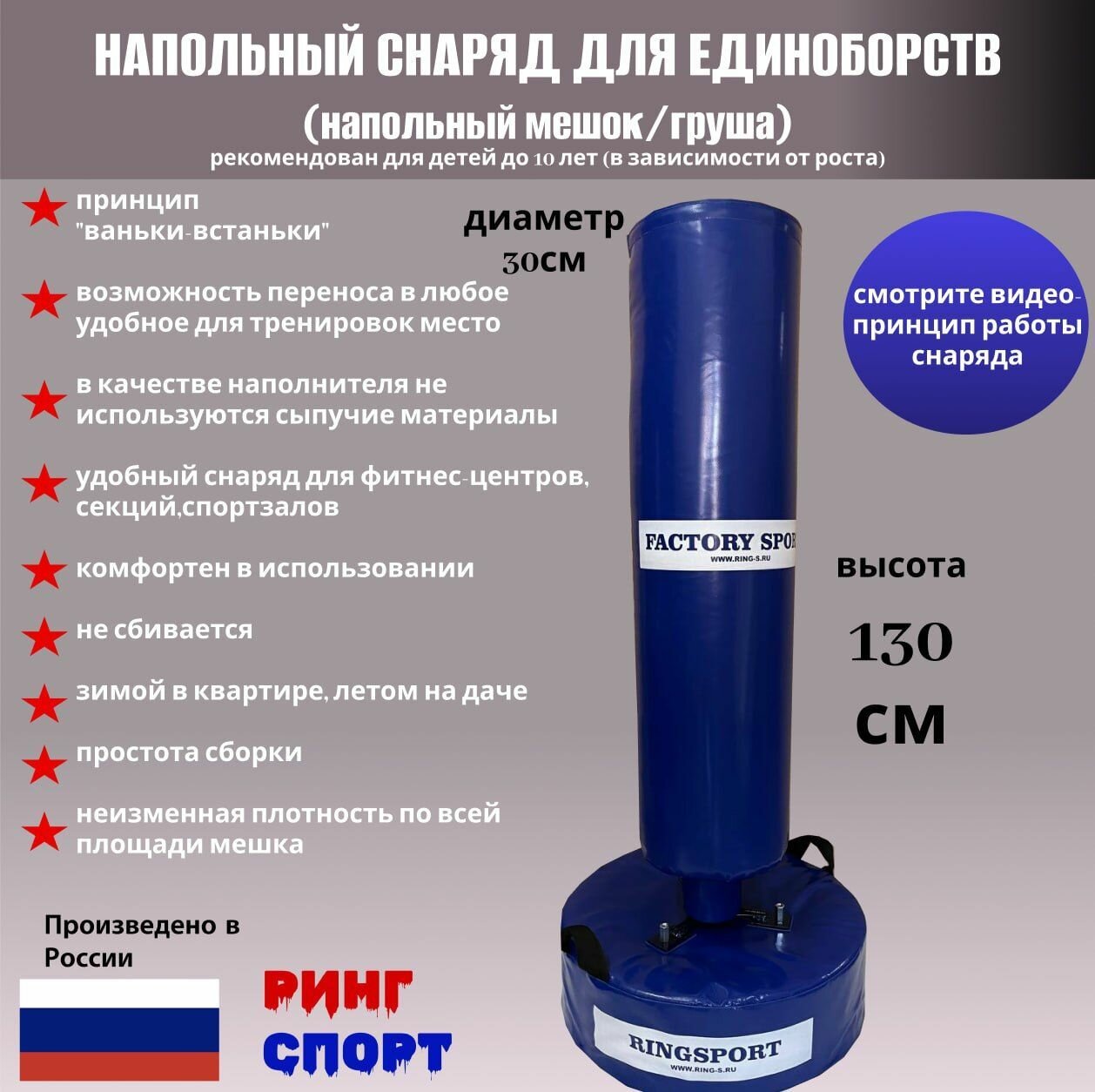 Напольный боксерский мешок/груша Ринг Спорт 130см/30см/70кг интересное:
