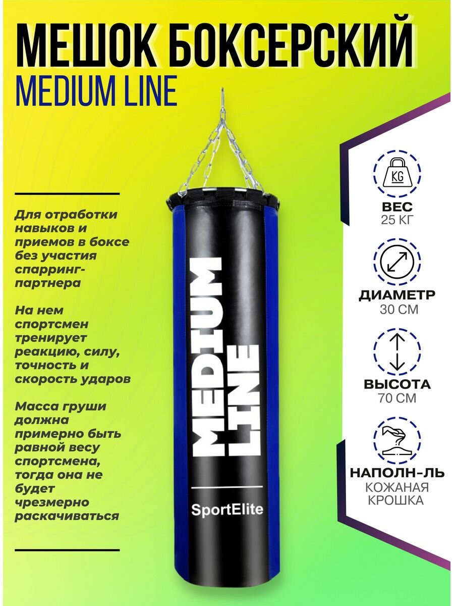Мешок боксерский SportElite MEDIUM LINE 70см, d-30, 25кг, сине-черный интересное: