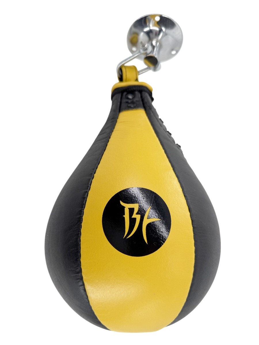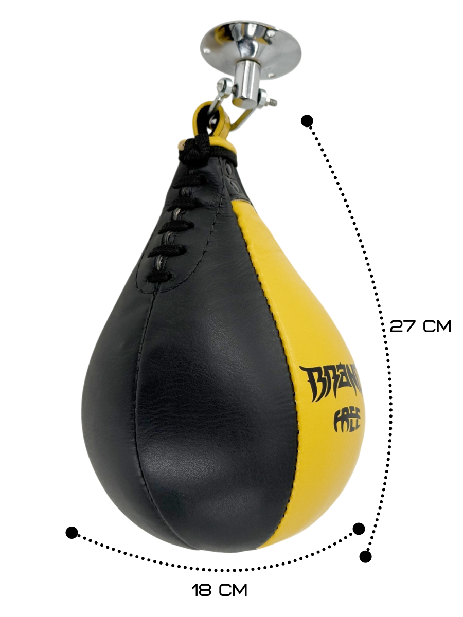Купить Груша пневматическая боксёрская скоростная, с креплением, натуральная кожа, желтая